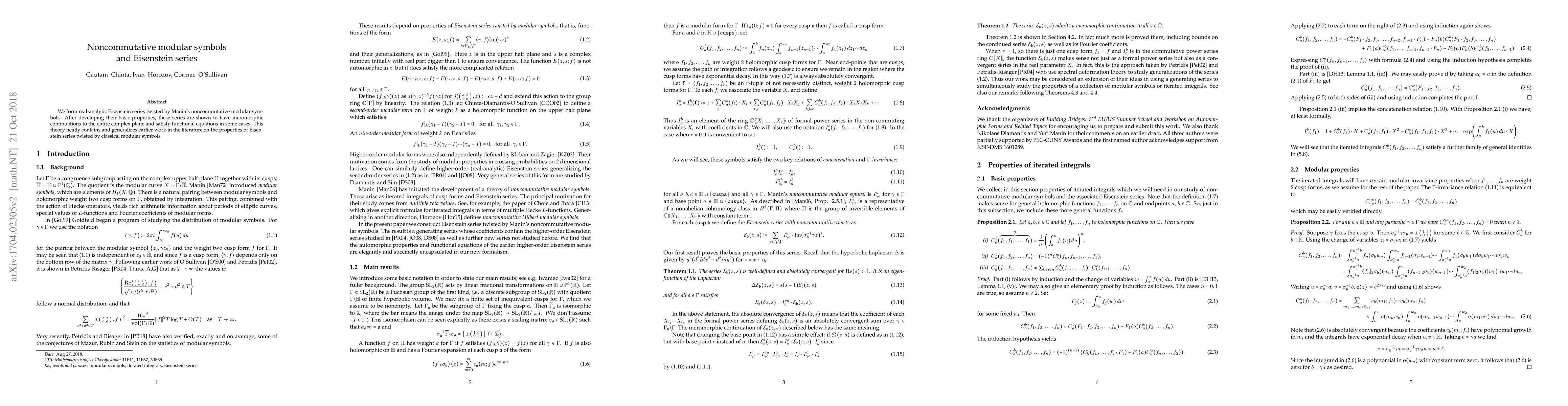 The paper introduces a method for constructing and analyzing Eisenstein series twisted by noncommutative modular symbols, proving their meromorphic continuation and functional equations, and providing growth estimates.