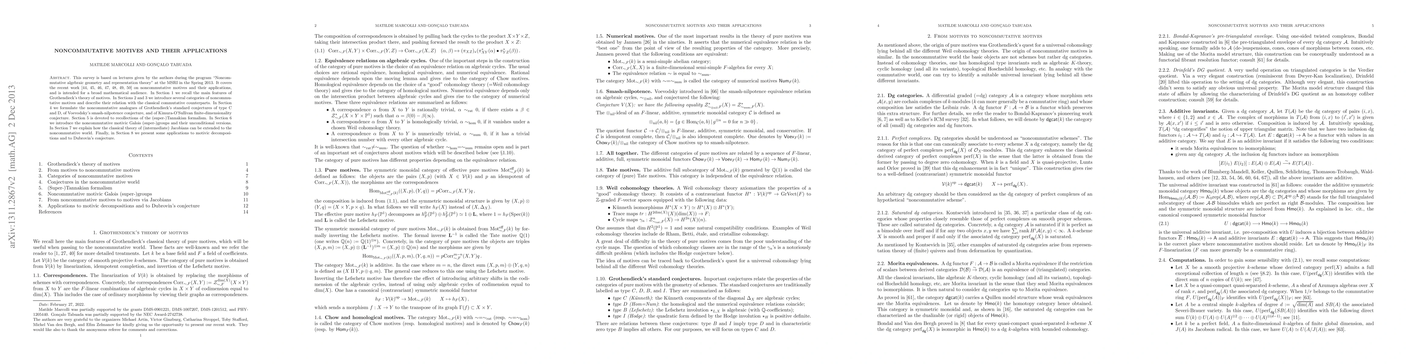 This paper surveys recent advancements in noncommutative motives, focusing on their applications, and is aimed at a general mathematical audience. The authors discuss the foundational concepts and significant developments presented during the 2013 MSRI program on noncommutative algebraic geometry and representation theory.