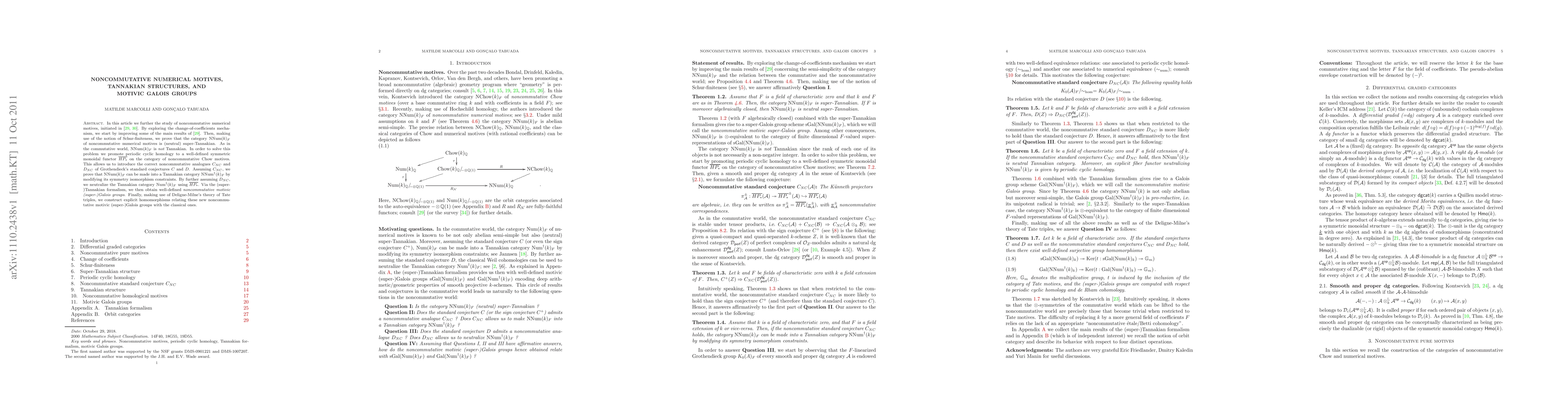 In this article we further the study of noncommutative numerical motives. By exploring the change-of-coefficients mechanism, we start by improving some of our previous main results. Then, making use of the notion of Schur-finiteness, we prove that the category NNum(k)_F of noncommutative numerical motives is (neutral) super-Tannakian. As in the commutative world, NNum(k)_F is not Tannakian. In order to solve this problem we promote periodic cyclic homology to a well-defined symmetric monoidal functor HP on the category of noncommutative Chow motives. This allows us to introduce the correct noncommutative analogues C_NC and D_NC of Grothendieck's standard conjectures C and D. Assuming C_NC, we prove that NNum(k)_F can be made into a Tannakian category NNum'(k)_F by modifying its symmetry isomorphism constraints. By further assuming D_NC, we neutralize the Tannakian category NNum'(k)_F using HP. Via the (super-)Tannakian formalism, we then obtain well-defined noncommutative motivic (super-)Galois groups. Finally, making use of Deligne-Milne's theory of Tate triples, we construct explicit homomorphisms relating these new noncommutative motivic (super-)Galois groups with the classical ones.