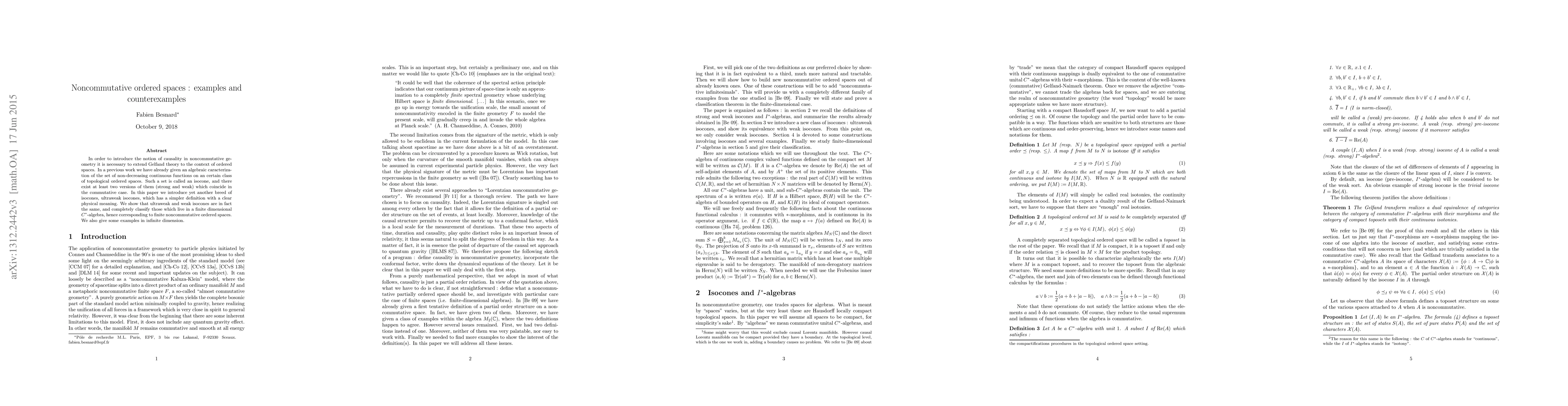 In order to introduce the notion of causality in noncommutative geometry it is necessary to extend Gelfand theory to the context of ordered spaces. In a previous work we have already given an algebraic caracterization of the set of non-decreasing continuous functions on an certain class of topological ordered spaces. Such a set is called an isocone, and there exist at least two versions of them (strong and weak) which coincide in the commutative case. In this paper we introduce yet another breed of isocones, ultraweak isocones, which has a simpler definition with a clear physical meaning. We show that ultraweak and weak isocones are in fact the same, and completely classify those which live in a finite dimensional $C^*$-algebra, hence corresponding to finite noncommutative ordered spaces. We also give some examples in infinite dimension.