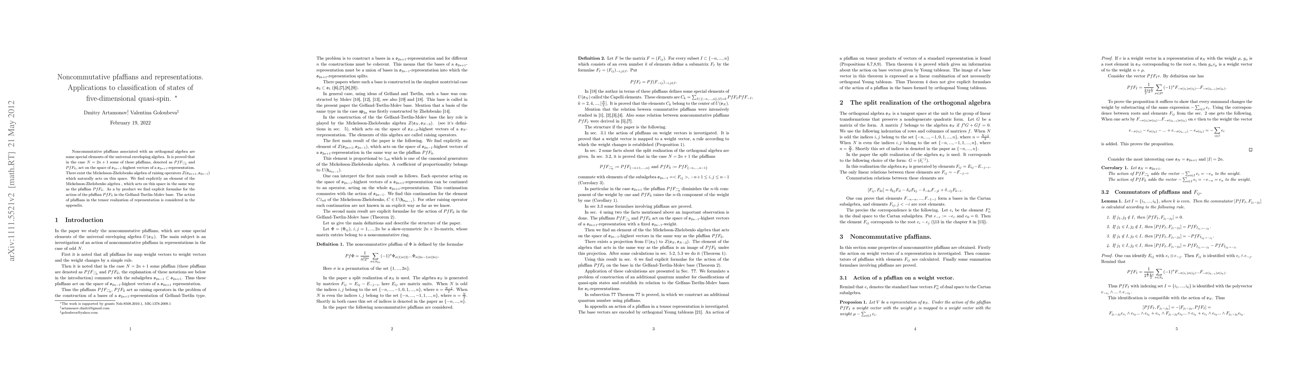 Noncommutative pfaffians associated with an orthogonal algebra are some special elements of the universal enveloping algebra. In the paper it is suggested to use some pfaffians as raising operators. The images of these pfaffians in the Mickelson-Zhelobenko algebra are calculated. It allows to find a place of pfaffians among other raising operators. As a byproduct the action of the pfaffians on the Gelfand-Tsetlin-Molev bases is found. The action of pfaffians in the tensor realization of representation is considered in the appendix.