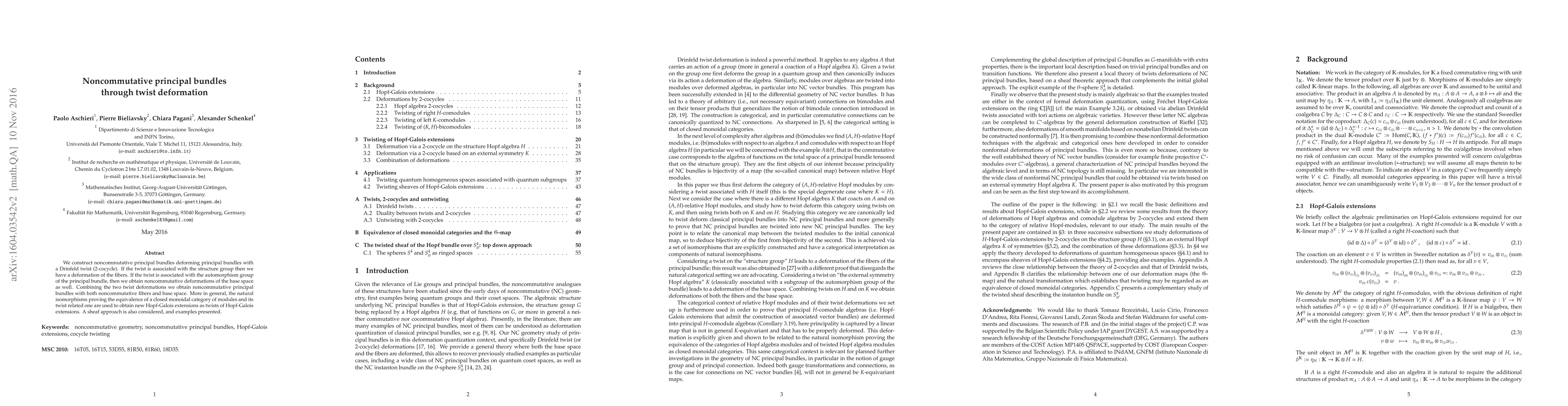 This paper constructs noncommutative principal bundles via twist deformations using Drinfeld twists (2-cocycles), resulting in either noncommutative fibers or base spaces depending on the twist association. The work also explores general isomorphisms in closed monoidal categories and presents new Hopf-Galois extensions through twist deformations, alongside a sheaf-theoretic approach and illustrative examples.