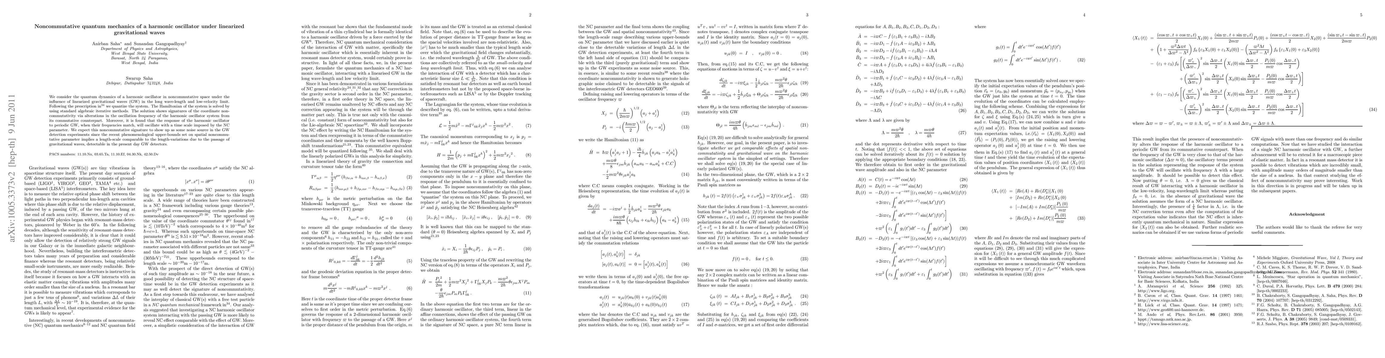 This paper investigates the quantum dynamics of a harmonic oscillator in noncommutative space influenced by linearized gravitational waves, showing that noncommutativity alters the oscillator's frequency and introduces a time scale in its response to matching gravitational wave frequencies, potentially observable in modern gravitational wave detectors.