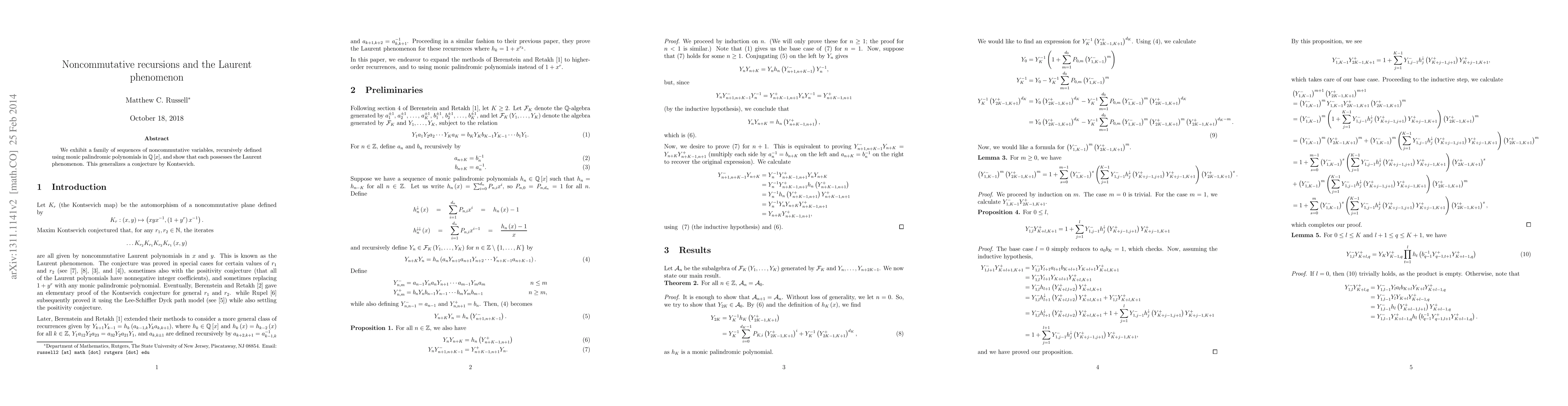 We exhibit a family of sequences of noncommutative variables, recursively defined using monic palindromic polynomials in $\mathbb Q[x]$, and show that each possesses the Laurent phenomenon. This generalizes a conjecture by Kontsevich.