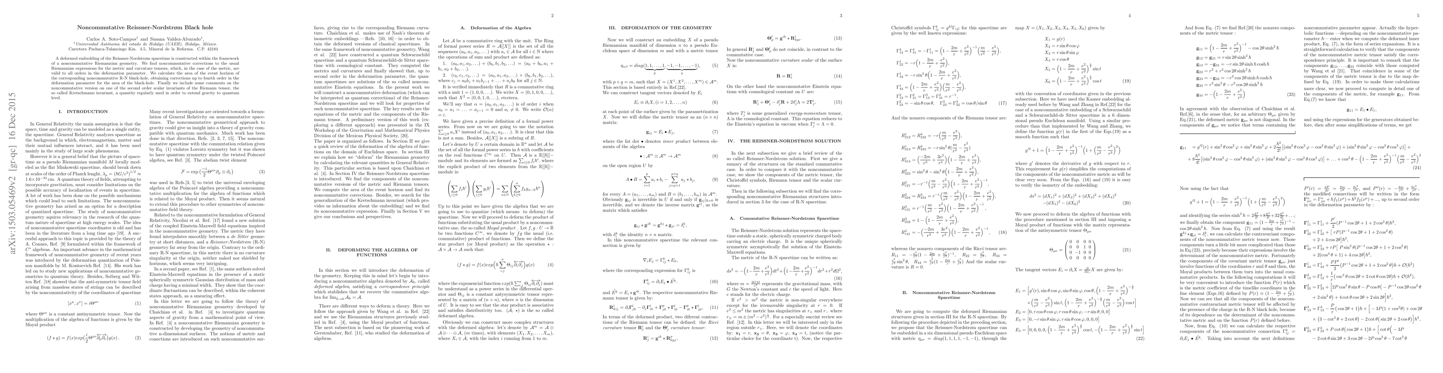 The paper presents a detailed construction of a noncommutative Reissner-Nordstrøm black hole, including the deformed metric, curvature tensors, and event horizon area with corrections.