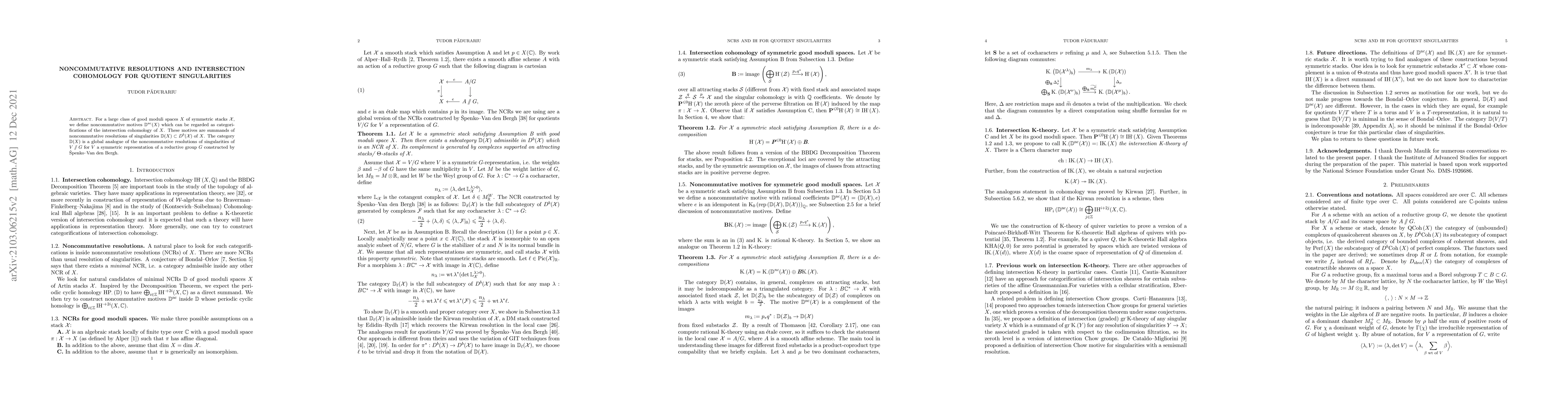 For a large class of good moduli spaces $X$ of symmetric stacks $\mathcal{X}$, we define noncommutative motives $\mathbb{D}^{\text{nc}}(X)$ which can be regarded as categorifications of the intersection cohomology of $X$. These motives are summands of noncommutative resolutions of singularities $\mathbb{D}(X)\subset D^b(\mathcal{X})$ of $X$. The category $\mathbb{D}(X)$ is a global analogue of the noncommutative resolutions of singularities of $V//G$ for $V$ a symmetric representation of a reductive group $G$ constructed by \v{S}penko-Van den Bergh.