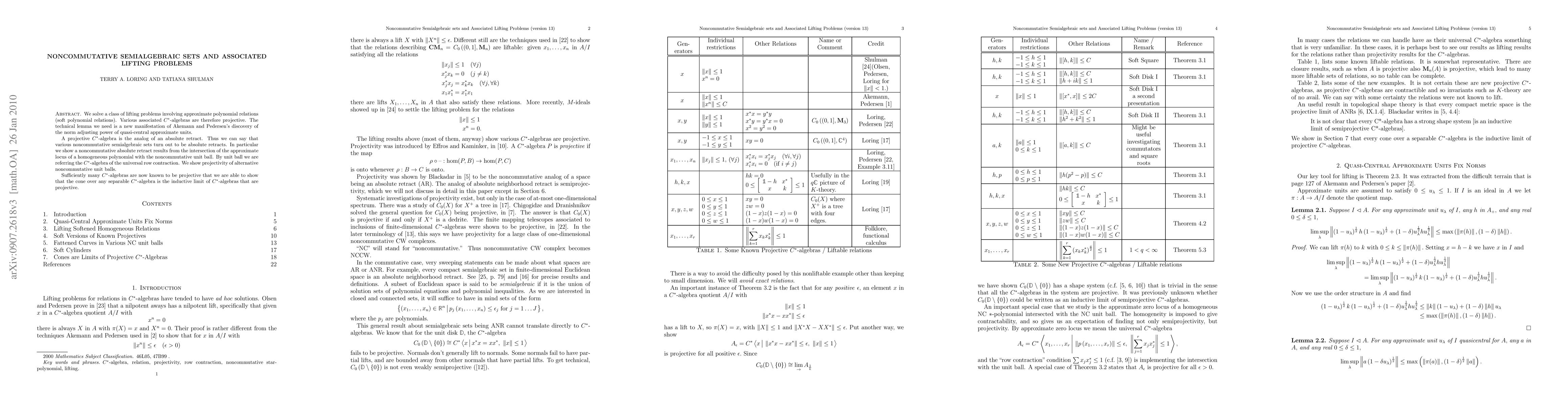 This research solves specific lifting problems involving approximate polynomial relations, revealing that various C*-algebras are projective. It introduces a new lemma based on Akemann and Pedersen's work, establishing that noncommutative semialgebraic sets are absolute retracts. The study demonstrates a noncommutative absolute retract from the intersection of an approximate polynomial locus with the noncommutative unit ball, and shows that the cone over any separable C*-algebra is an inductive limit of projective C*-algebras.