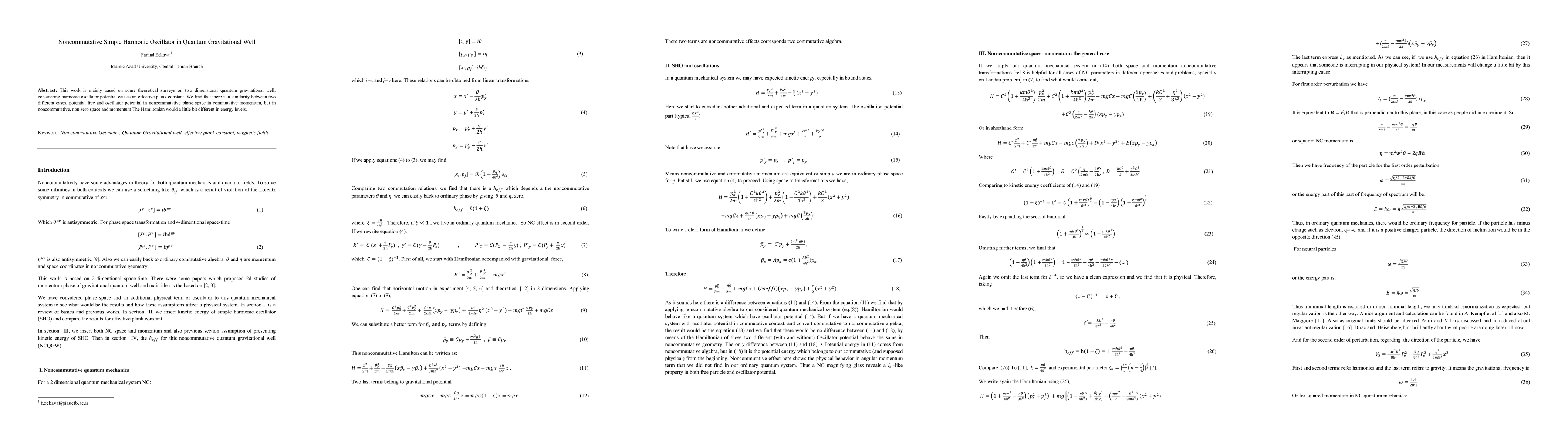 Summary: This research explores a two-dimensional quantum gravitational well with a harmonic oscillator potential, demonstrating that noncommutative space alters the Hamiltonian and energy levels, revealing similarities between potential-free and oscillator-driven scenarios in noncommutative versus commutative momentum.