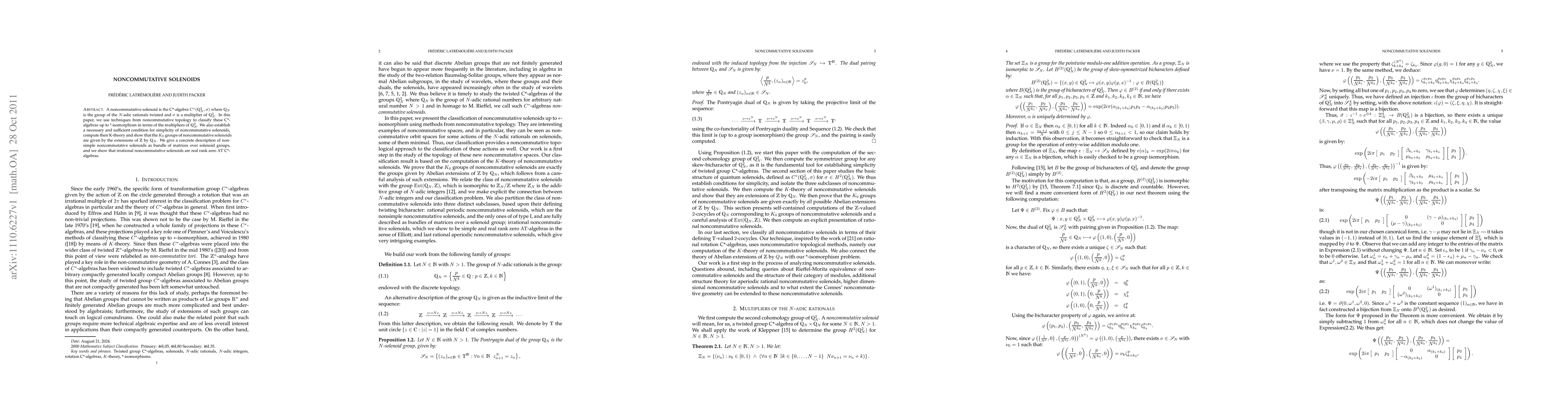 A noncommutative solenoid is the C*-algebra $C^\ast(\Q_N^2,\sigma)$ where $\Q_N$ is the group of the $N$-adic rationals twisted and $\sigma$ is a multiplier of $\Q_N^2$. In this paper, we use techniques from noncommutative topology to classify these C*-algebras up to *-isomorphism in terms of the multipliers of $\Q_N^2$. We also establish a necessary and sufficient condition for simplicity of noncommutative solenoids, compute their K-theory and show that the $K_0$ groups of noncommutative solenoids are given by the extensions of $\Z$ by $\Q_N$. We give a concrete description of non-simple noncommutative solenoids as bundle of matrices over solenoid groups, and we show that irrational noncommutative solenoids are real rank zero AT C*-algebras.