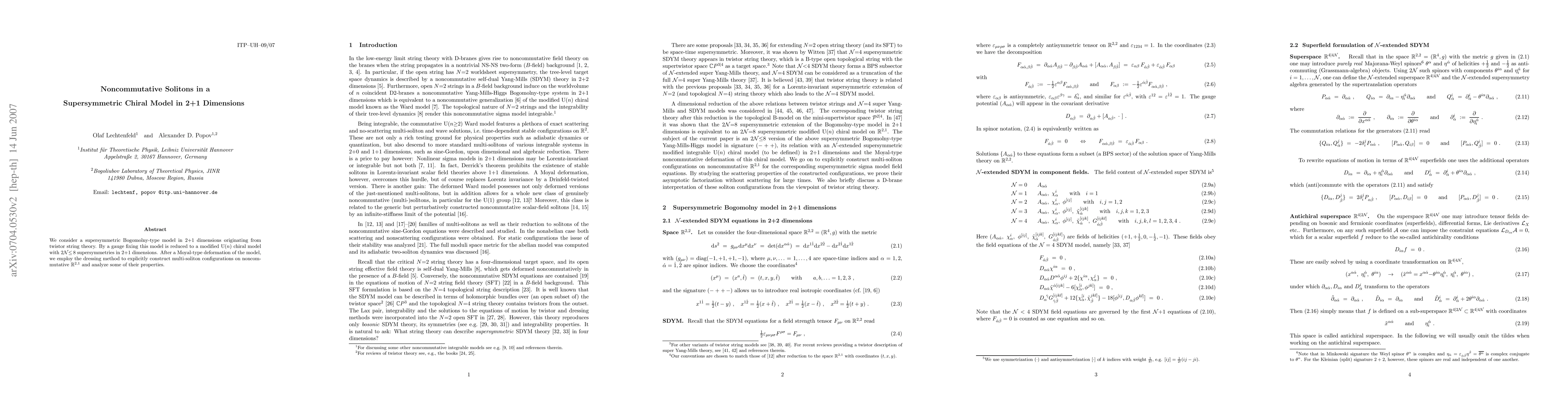 We consider a supersymmetric Bogomolny-type model in 2+1 dimensions originating from twistor string theory. By a gauge fixing this model is reduced to a modified U(n) chiral model with N<=8 supersymmetries in 2+1 dimensions. After a Moyal-type deformation of the model, we employ the dressing method to explicitly construct multi-soliton configurations on noncommutative R^{2,1} and analyze some of their properties.