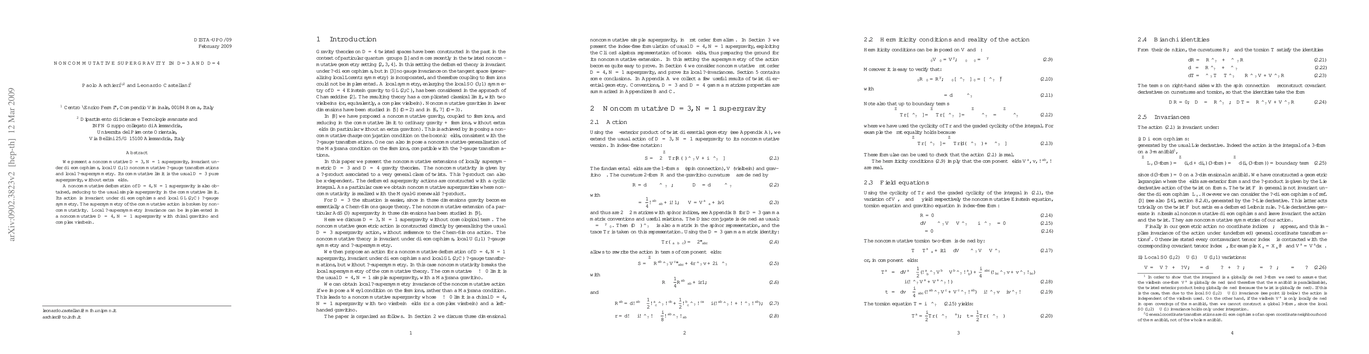 The research presents a noncommutative D=3, N=1 supergravity and a noncommutative D=4, N=1 supergravity, both invariant under diffeomorphisms, local gauge transformations, and supersymmetry. The noncommutative theories are shown to reduce to their commutative counterparts in the appropriate limits.