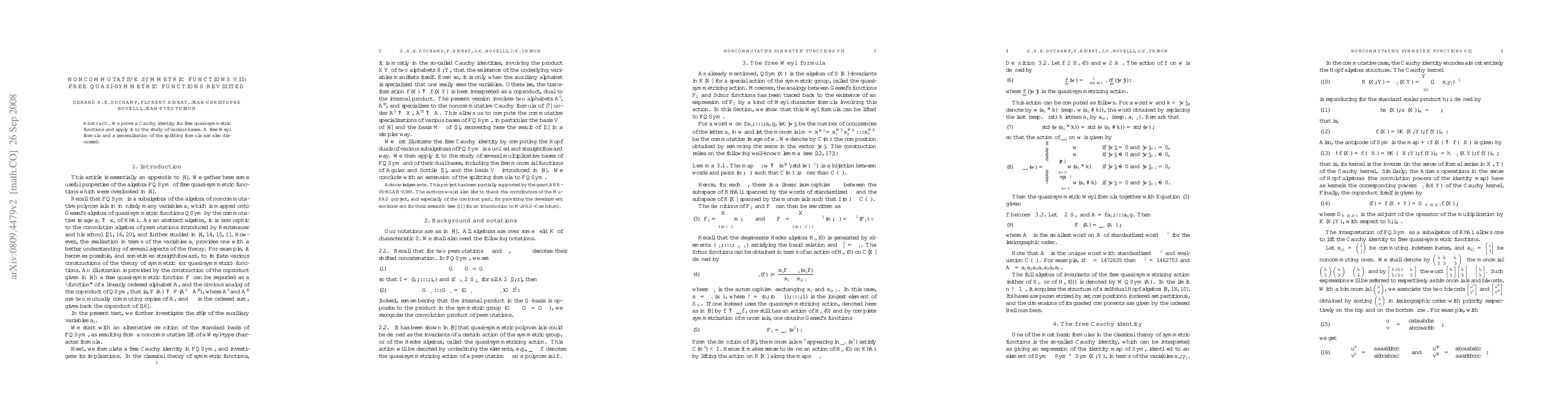 Summary: This paper establishes a Cauchy identity for free quasi-symmetric functions and utilizes it to explore different bases, alongside presenting a free Weyl formula and a generalized splitting formula.