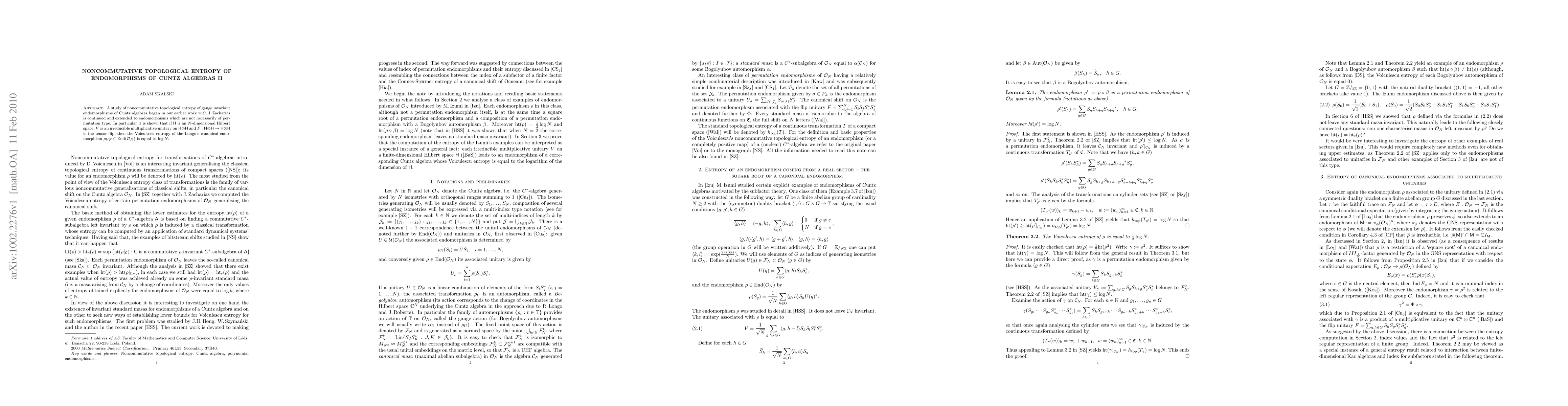 This paper extends the study of noncommutative topological entropy for gauge invariant endomorphisms of Cuntz algebras, focusing on those that are not necessarily of permutation type. It demonstrates that the Voiculescu entropy for the Longo's canonical endomorphism linked to a unitary operator VF is log N, where N is the dimension of the Hilbert space.