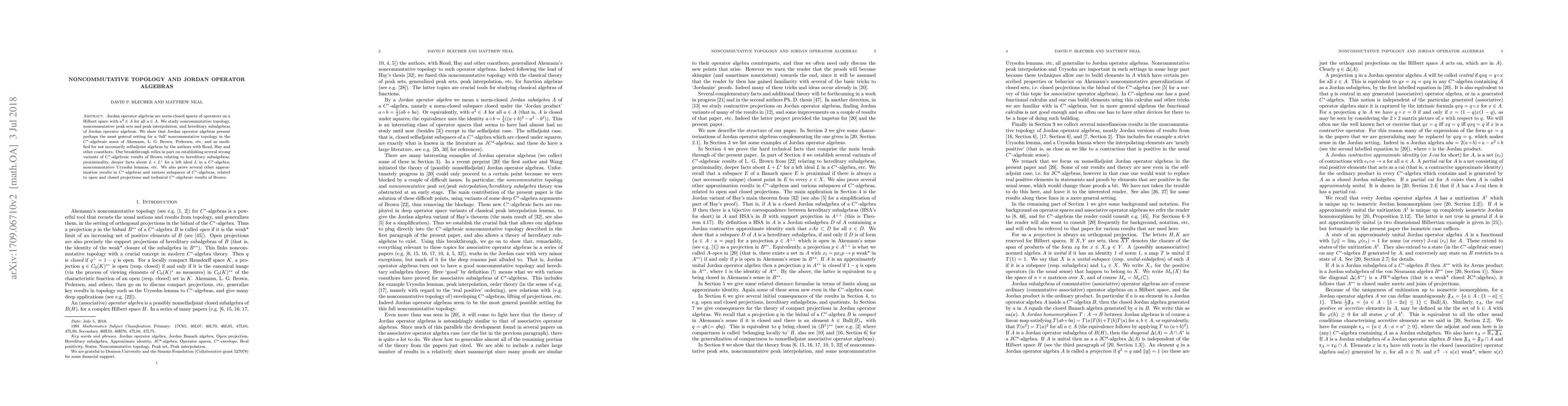 This paper explores noncommutative topology within Jordan operator algebras, demonstrating their suitability for a comprehensive noncommutative topological framework. It proves several results related to hereditary subalgebras, peak sets, and approximation properties in $C^*$-algebras, building on foundational work by Akemann, Brown, and Pedersen.