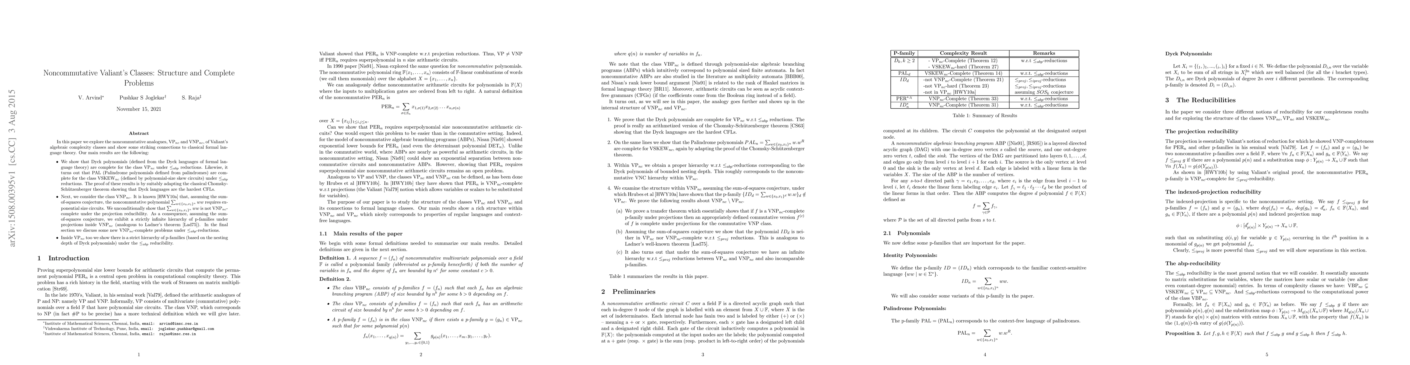 In this paper we explore the noncommutative analogues, $\mathrm{VP}_{nc}$ and $\mathrm{VNP}_{nc}$, of Valiant's algebraic complexity classes and show some striking connections to classical formal language theory. Our main results are the following: (1) We show that Dyck polynomials (defined from the Dyck languages of formal language theory) are complete for the class $\mathrm{VP}_{nc}$ under $\le_{abp}$ reductions. Likewise, it turns out that $\mathrm{PAL}$ (Palindrome polynomials defined from palindromes) are complete for the class $\mathrm{VSKEW}_{nc}$ (defined by polynomial-size skew circuits) under $\le_{abp}$ reductions. The proof of these results is by suitably adapting the classical Chomsky-Sch\"{u}tzenberger theorem showing that Dyck languages are the hardest CFLs. (2) Next, we consider the class $\mathrm{VNP}_{nc}$. It is known~\cite{HWY10a} that, assuming the sum-of-squares conjecture, the noncommutative polynomial $\sum_{w\in\{x_0,x_1\}^n}ww$ requires exponential size circuits. We unconditionally show that $\sum_{w\in\{x_0,x_1\}^n}ww$ is not $\mathrm{VNP}_{nc}$-complete under the projection reducibility. As a consequence, assuming the sum-of-squares conjecture, we exhibit a strictly infinite hierarchy of p-families under projections inside $\mathrm{VNP}_{nc}$ (analogous to Ladner's theorem~\cite{Ladner75}). In the final section we discuss some new $\mathrm{VNP}_{nc}$-complete problems under $\le_{abp}$-reductions. (3) Inside $\mathrm{VP}_{nc}$ too we show there is a strict hierarchy of p-families (based on the nesting depth of Dyck polynomials) under the $\le_{abp}$ reducibility.