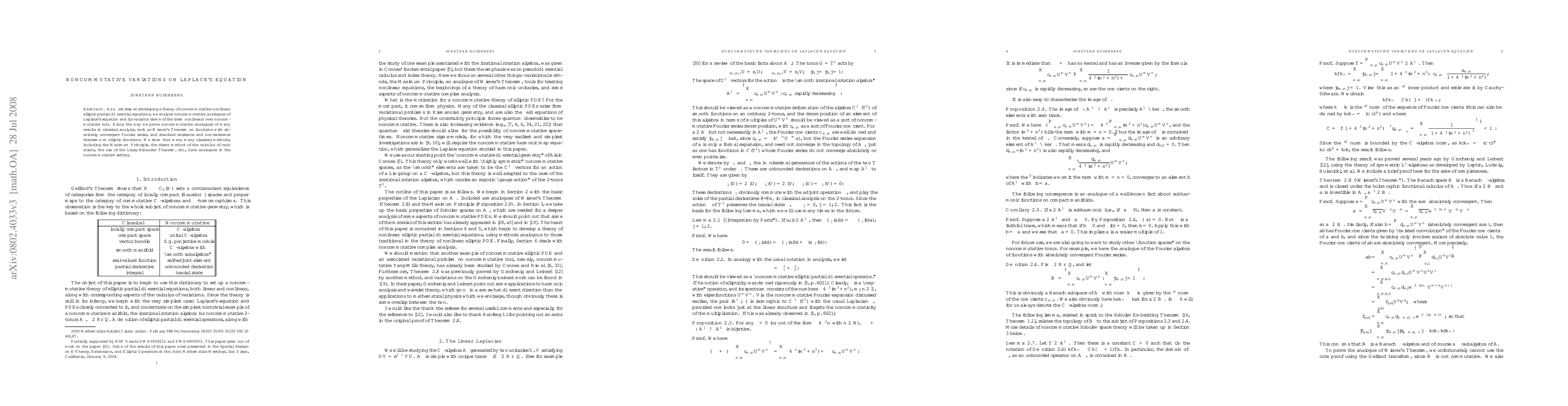 This paper explores noncommutative analogues of Laplace's equation on noncommutative tori, developing a theory for noncommutative nonlinear elliptic PDEs. It establishes noncommutative versions of classical analysis results and demonstrates the applicability of classical methods like the Maximum Principle in this setting.