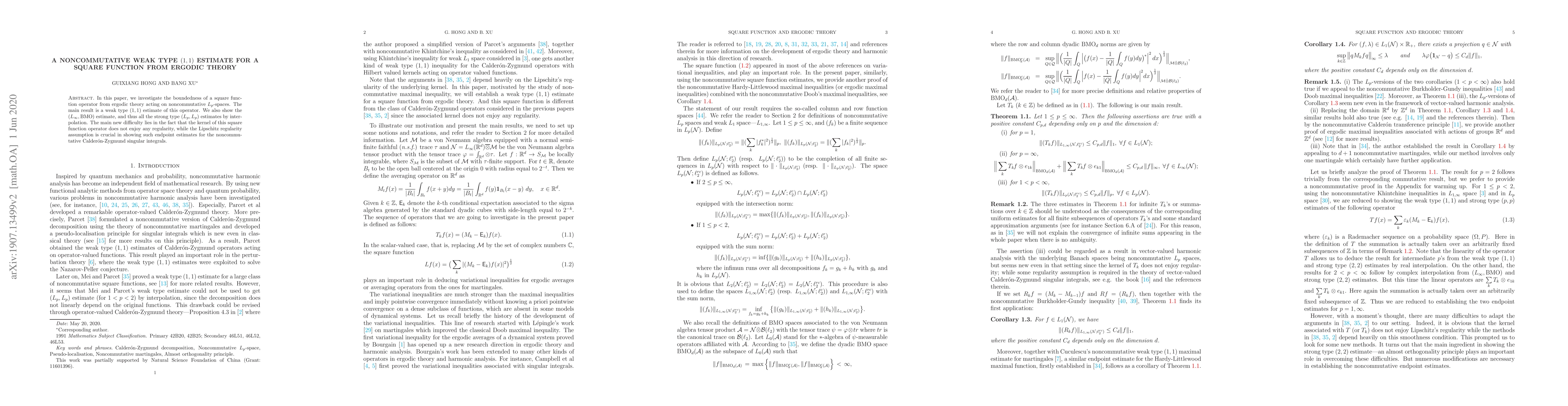 This paper establishes a weak $(1,1)$ type estimate for a square function derived from ergodic theory in noncommutative $L_p$-spaces, overcoming the lack of regularity in its kernel. Additionally, it demonstrates an $(L_{\infty},\mathrm{BMO})$ estimate leading to a strong $(L_p,L_p)$ estimate via interpolation.