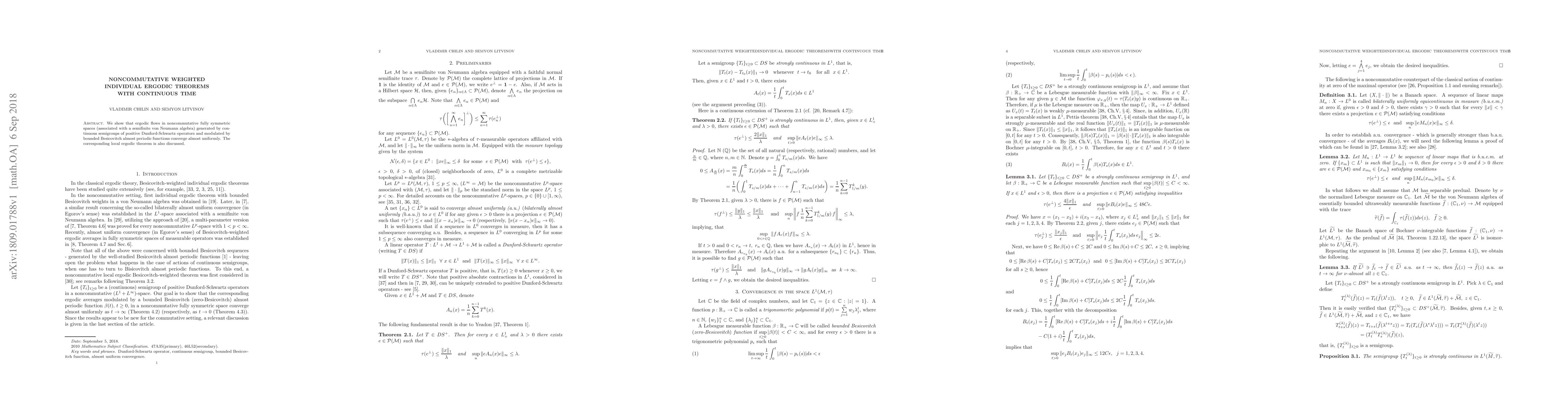 We show that ergodic flows in noncommutative fully symmetric spaces (associated with a semifinite von Neumann algebra) generated by continuous semigroups of positive Dunford-Schwartz operators and modulated by bounded Besicovitch almost periodic functions converge almost uniformly. The corresponding local ergodic theorem is also discussed.