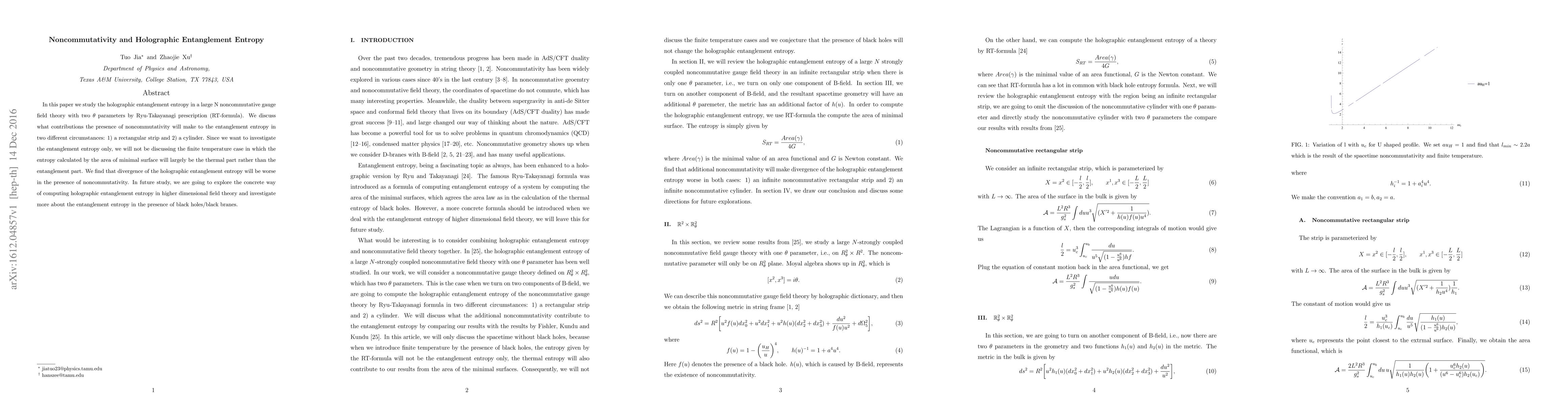 This paper examines the holographic entanglement entropy in noncommutative gauge field theories, focusing on the Ryu-Takayanagi formula for both rectangular and cylindrical geometries. It finds that noncommutativity exacerbates the divergence of entanglement entropy, setting the stage for future studies on higher dimensions and black holes/black branes.