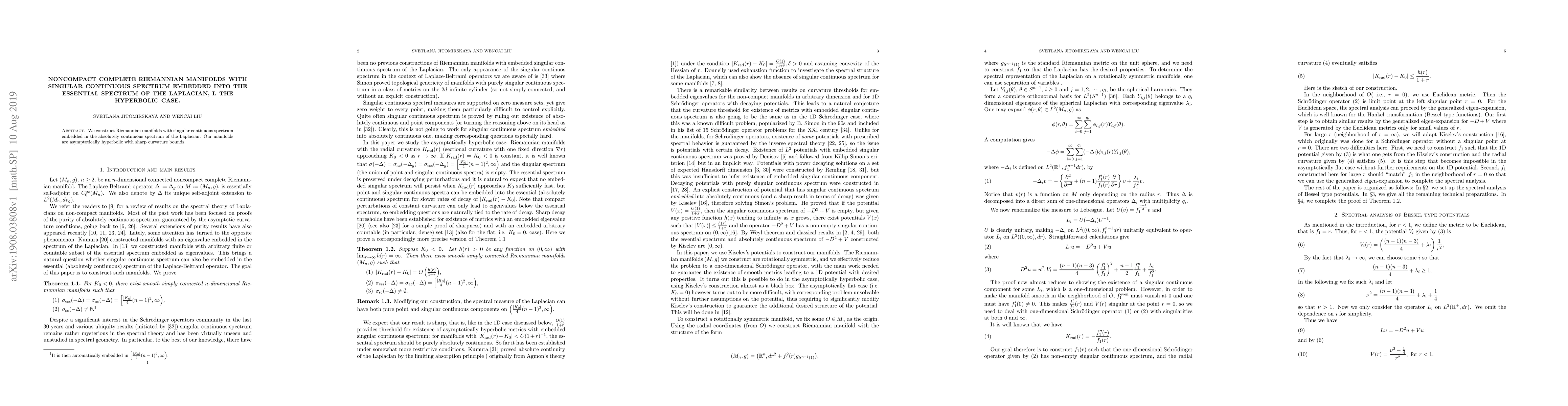 Summary: This paper constructs asymptotically hyperbolic Riemannian manifolds with singular continuous spectrum embedded within the absolutely continuous spectrum of the Laplacian operator, featuring sharp curvature bounds. The focus is on the hyperbolic case.