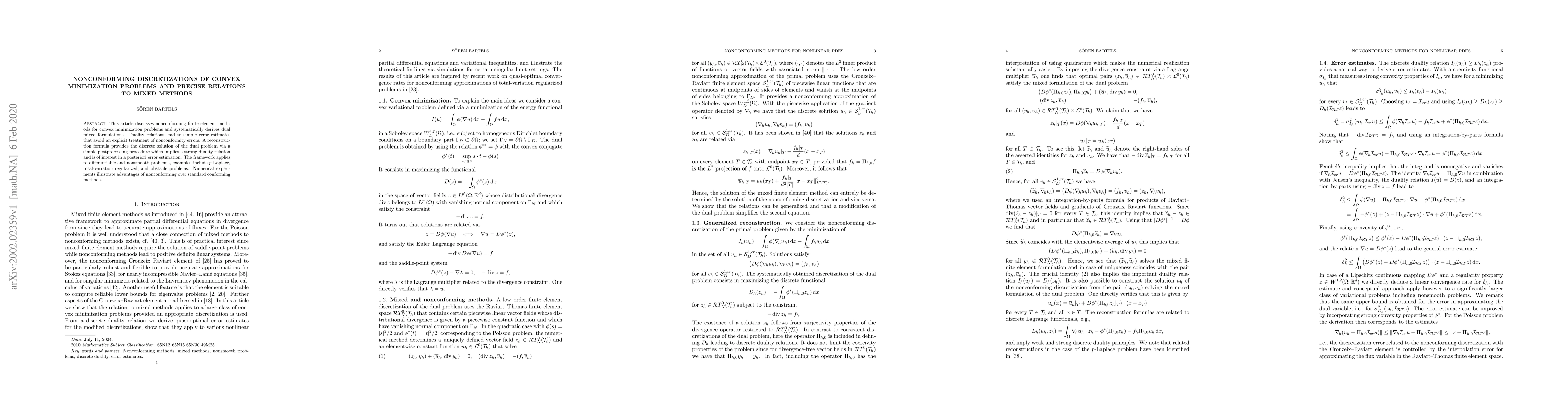 This paper explores nonconforming finite element methods for convex minimization problems, deriving dual mixed formulations and establishing precise relations to mixed methods. It provides a reconstruction formula for the dual problem, enabling strong duality and aiding in a posteriori error estimation, with numerical experiments showing benefits over conforming methods.