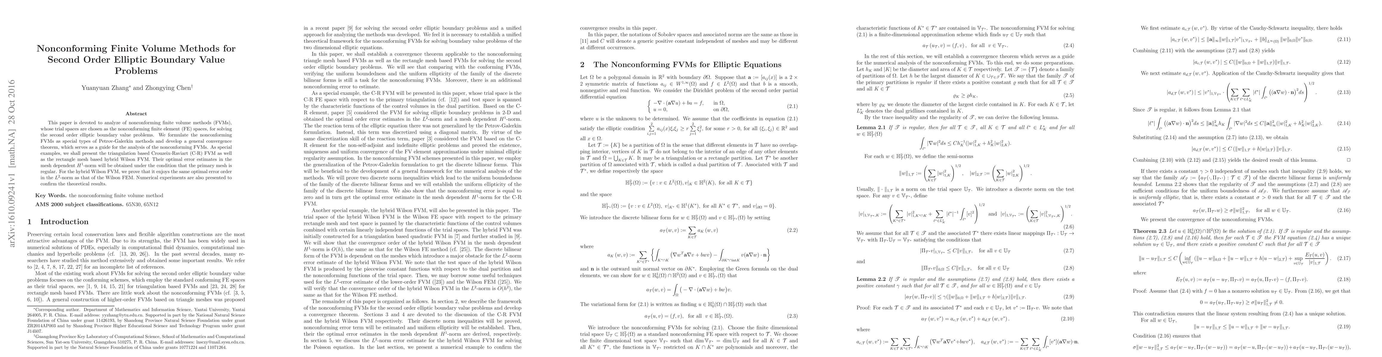 This paper analyzes nonconforming finite volume methods for solving second order elliptic boundary value problems, formulating them as special Petrov-Galerkin methods and proving a general convergence theorem. It presents optimal error estimates for specific methods like the Crouzeix-Raviart and hybrid Wilson FVMs, and confirms theoretical results with numerical experiments.