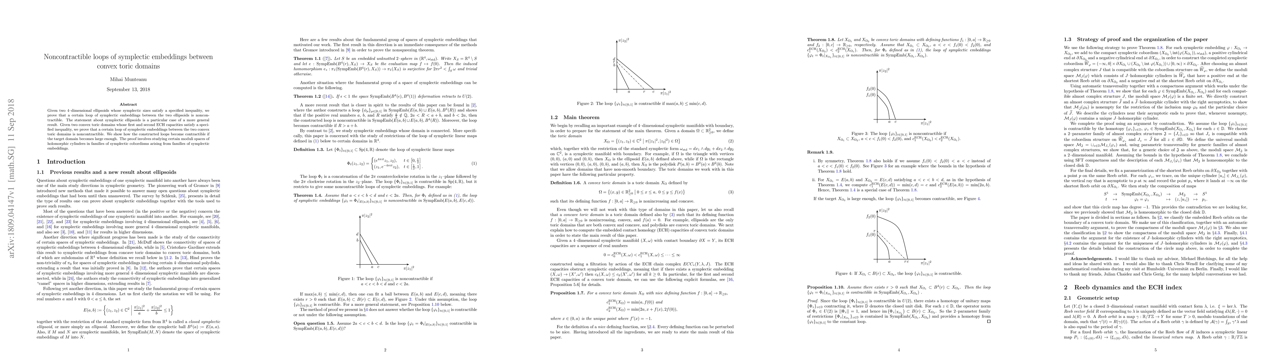 Given two 4-dimensional ellipsoids whose symplectic sizes satisfy a specified inequality, we prove that a certain loop of symplectic embeddings between the two ellipsoids is noncontractible. The statement about symplectic ellipsoids is a particular case of a more general result. Given two convex toric domains whose first and second ECH capacities satisfy a specified inequality, we prove that a certain loop of symplectic embeddings between the two convex toric domains is noncontractible. We show how the constructed loops become contractible if the target domain becomes large enough. The proof involves studying certain moduli spaces of holomorphic cylinders in families of symplectic cobordisms arising from families of symplectic embeddings.