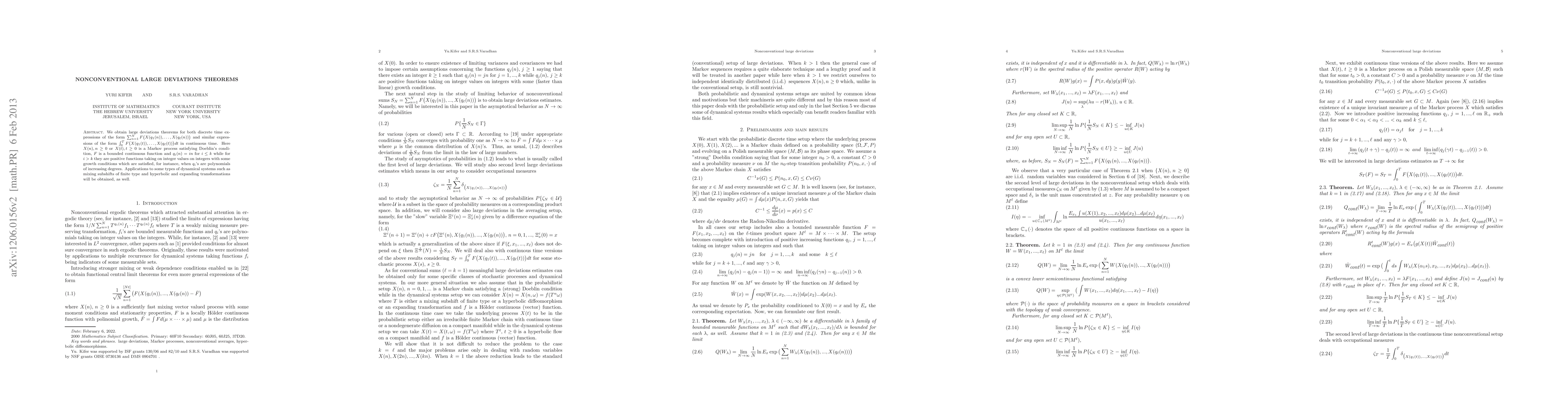 Summary: This paper presents large deviations theorems for nonconventional sums driven by Markov processes or dynamical systems like subshifts of finite type and hyperbolic transformations, under the Doeblin condition. These results extend the understanding of large deviations in nonstandard stochastic environments.