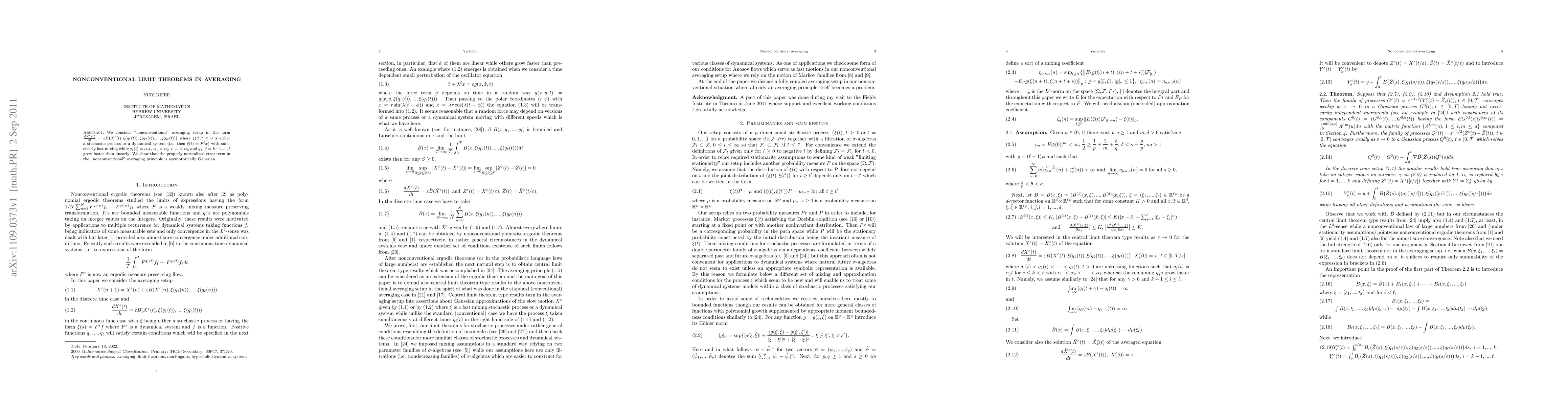 This research paper explores a new type of averaging principle for nonconventional limit theorems, showing that error terms follow an asymptotically Gaussian distribution.