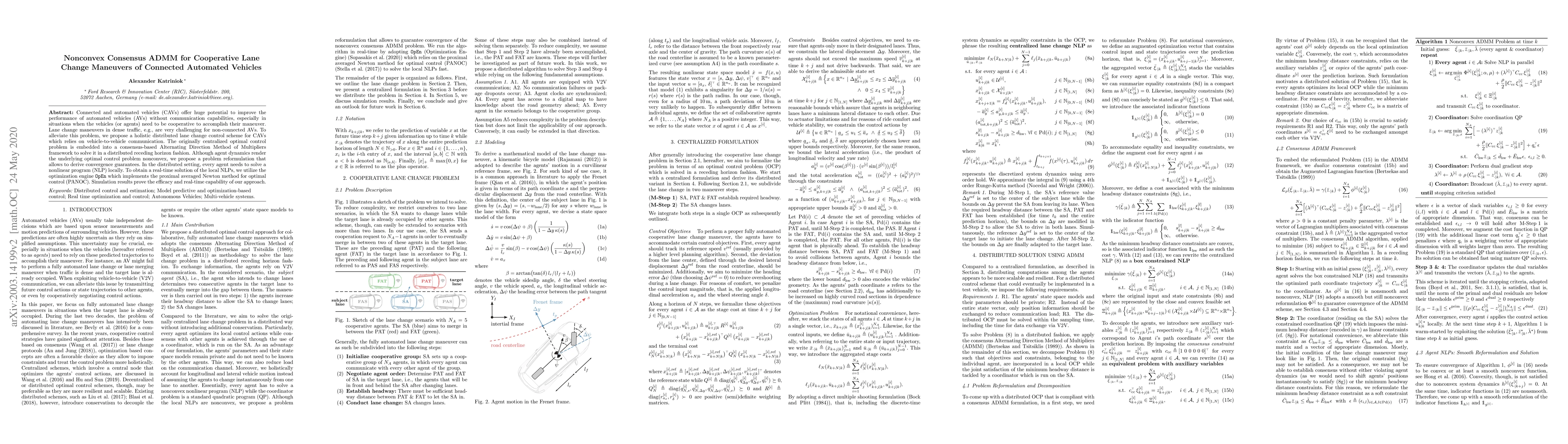 This paper proposes a consensus-based ADMM framework for cooperative lane change maneuvers among connected automated vehicles, addressing nonconvex optimal control problems through reformulation and real-time optimization using OpEn. Simulation results demonstrate the efficacy and real-time performance of the distributed control scheme.