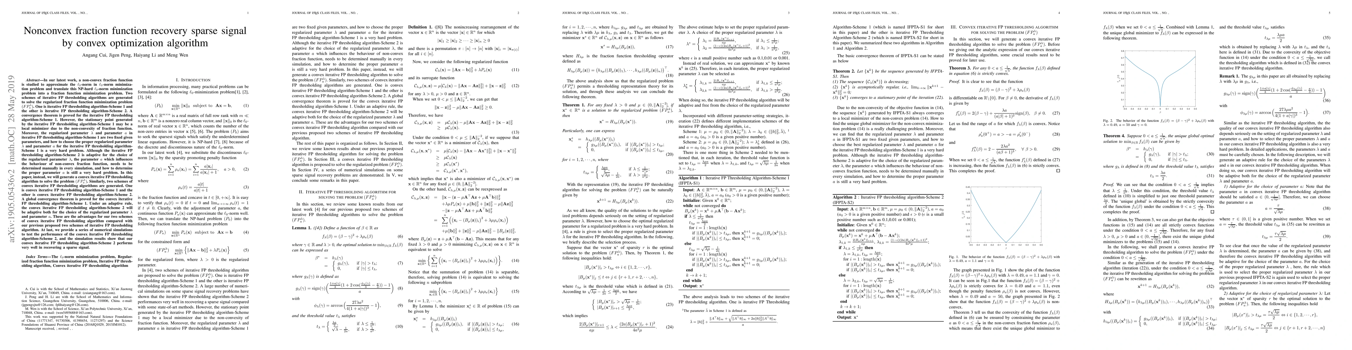 A new convex optimization algorithm is proposed to recover sparse signals from nonconvex fraction functions, outperforming previous methods through adaptive rules for regularized parameters.