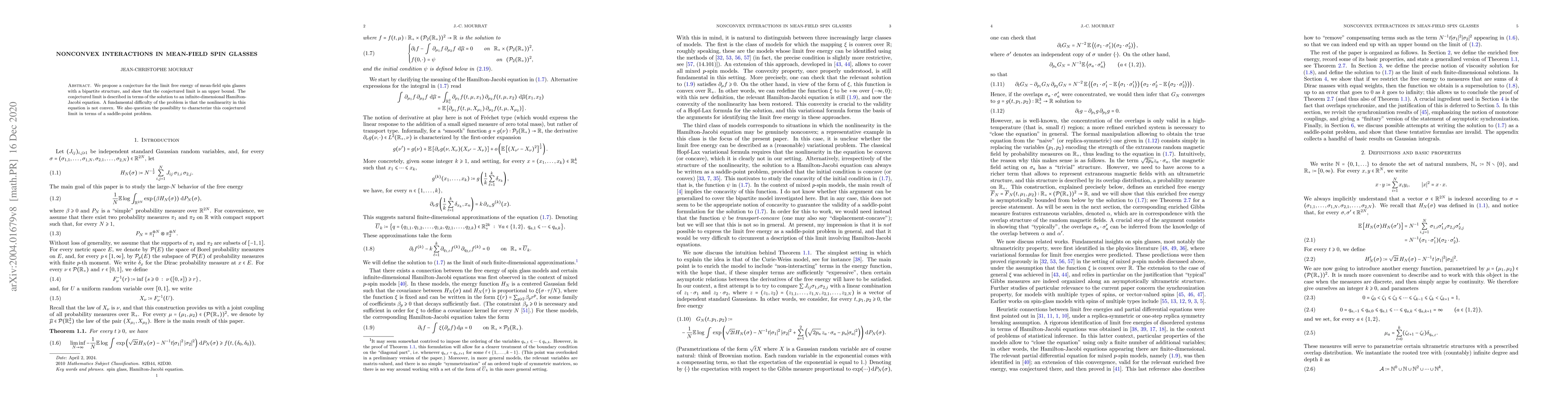 The paper introduces a novel conjecture for the limit of mean-field spin glasses with bipartite structures, described by a non-convex Hamilton-Jacobi equation, and establishes its upper bound nature.