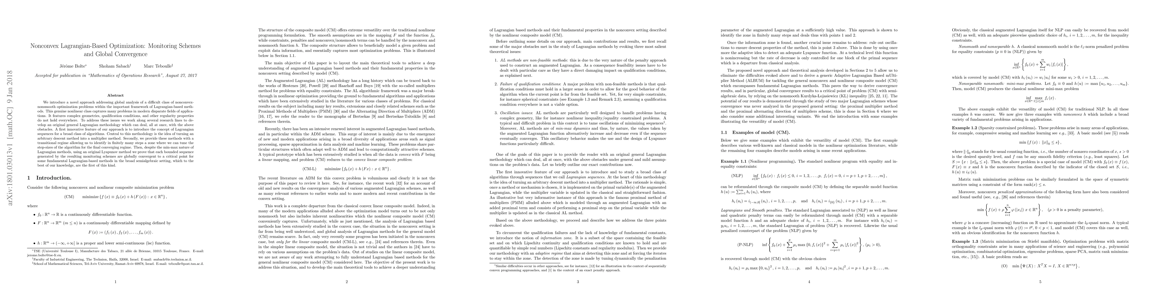 We introduce a novel approach addressing global analysis of a difficult class of nonconvex-nonsmooth optimization problems within the important framework of Lagrangian-based methods. This genuine nonlinear class captures many problems in modern disparate fields of applications. It features complex geometries, qualification conditions, and other regularity properties do not hold everywhere. To address these issues we work along several research lines to develop an original general Lagrangian methodology which can deal, all at once, with the above obstacles. A first innovative feature of our approach is to introduce the concept of Lagrangian sequences for a broad class of algorithms. Central to this methodology is the idea of turning an arbitrary descent method into a multiplier method. Secondly, we provide these methods with a transitional regime allowing us to identify in finitely many steps a zone where we can tune the step-sizes of the algorithm for the final converging regime. Then, despite the min-max nature of Lagrangian methods, using an original Lyapunov method we prove that each bounded sequence generated by the resulting monitoring schemes are globally convergent to a critical point for some fundamental Lagrangian-based methods in the broad semialgebraic setting, which to the best of our knowledge, are the first of this kind.