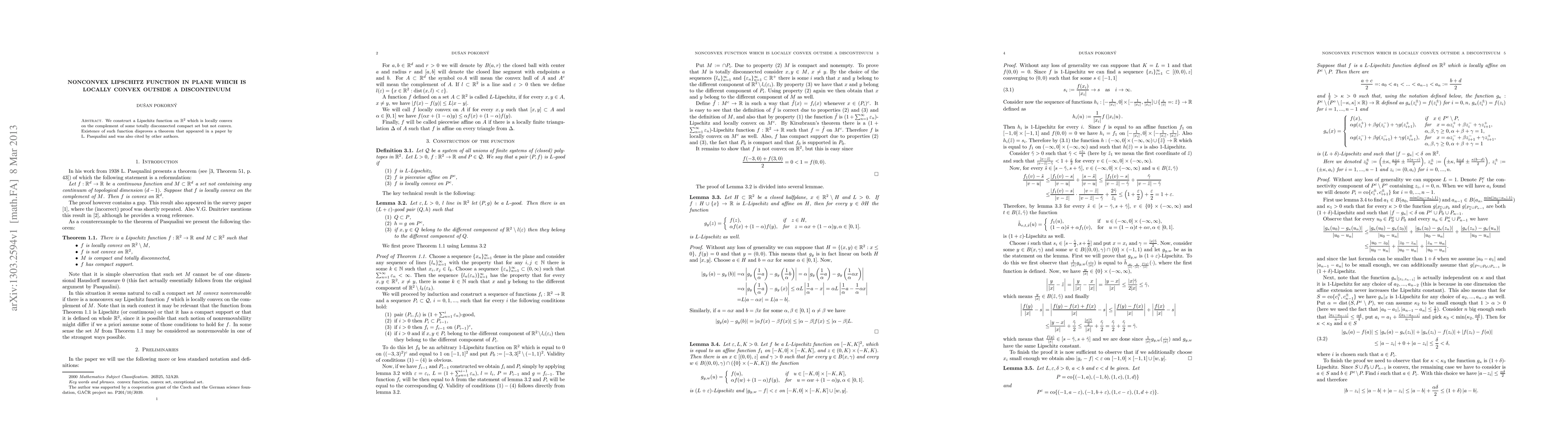 We construct a Lipschitz function on $\er^{2}$ which is locally convex on the complement of some totally disconnected compact set but not convex. Existence of such function disproves a theorem that appeared in a paper by L. Pasqualini and was also cited by other authors.