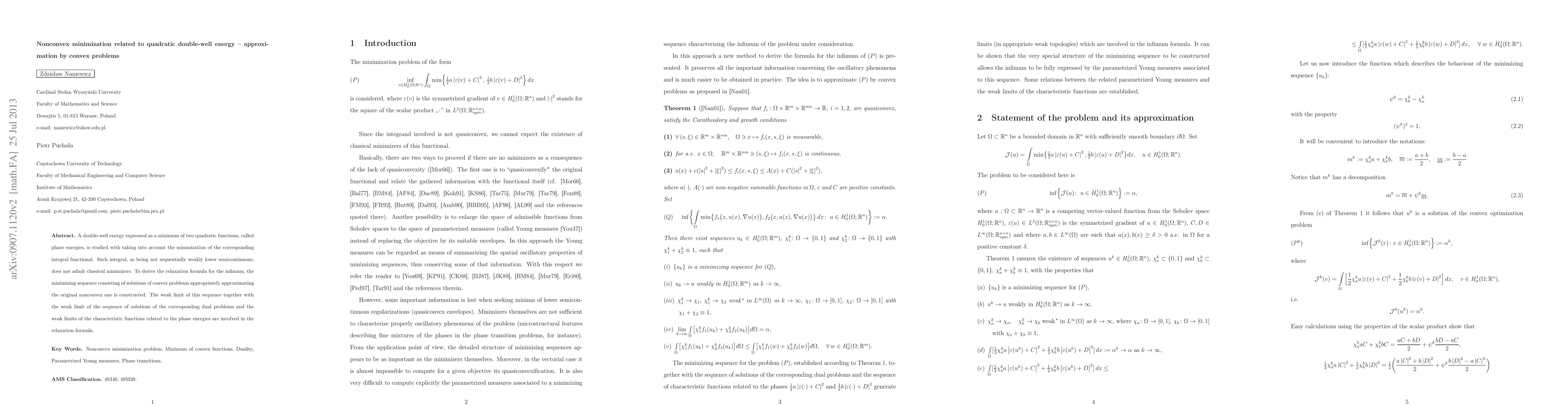 This paper studies the nonconvex minimization problem related to a double-well quadratic energy, constructing a sequence of convex problems to approximate the solution. The relaxation formula for the infimum involves the weak limits of this sequence and related dual problems.
