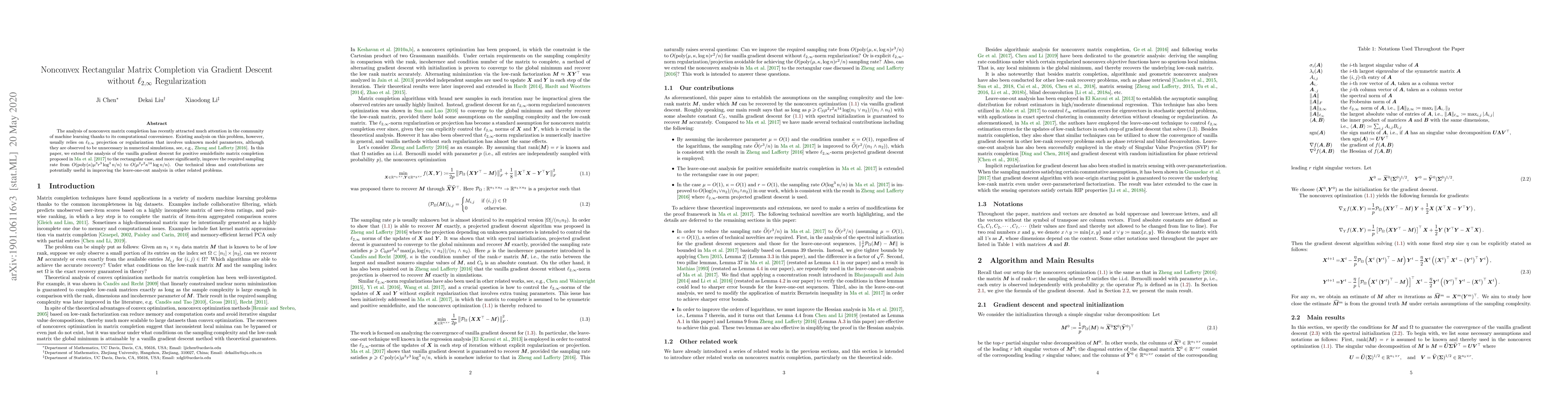 This paper extends the analysis of gradient descent for nonconvex matrix completion to rectangular matrices, demonstrating that $\ell_{2,\infty}$ regularization is unnecessary. The authors improve the required sampling rate significantly, offering potential benefits for related computational problems.