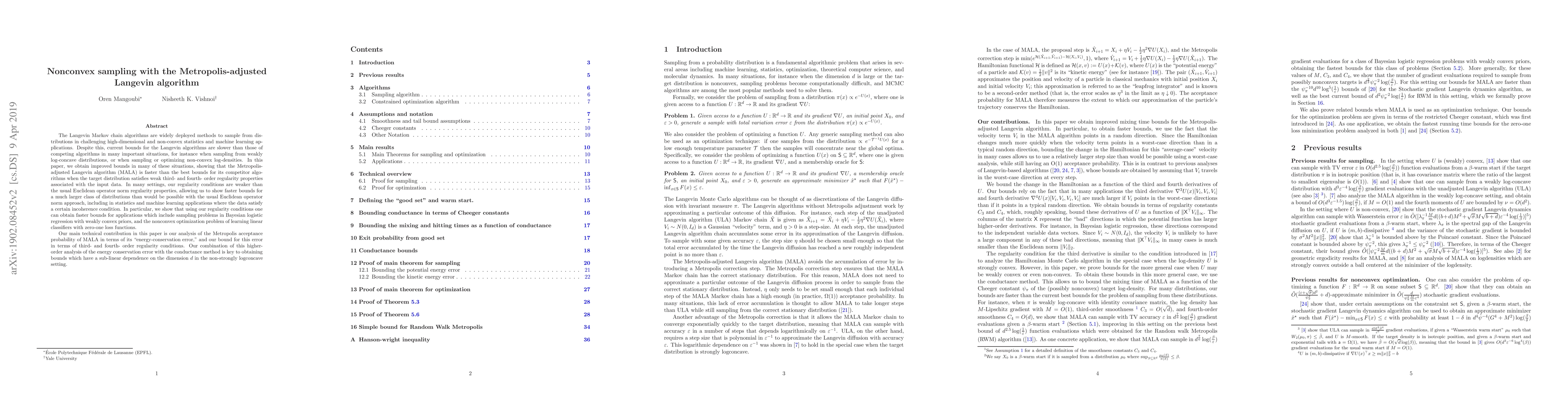 The Langevin Markov chain algorithms are widely deployed methods to sample from distributions in challenging high-dimensional and non-convex statistics and machine learning applications. Despite this, current bounds for the Langevin algorithms are slower than those of competing algorithms in many important situations, for instance when sampling from weakly log-concave distributions, or when sampling or optimizing non-convex log-densities. In this paper, we obtain improved bounds in many of these situations, showing that the Metropolis-adjusted Langevin algorithm (MALA) is faster than the best bounds for its competitor algorithms when the target distribution satisfies weak third- and fourth- order regularity properties associated with the input data. In many settings, our regularity conditions are weaker than the usual Euclidean operator norm regularity properties, allowing us to show faster bounds for a much larger class of distributions than would be possible with the usual Euclidean operator norm approach, including in statistics and machine learning applications where the data satisfy a certain incoherence condition. In particular, we show that using our regularity conditions one can obtain faster bounds for applications which include sampling problems in Bayesian logistic regression with weakly convex priors, and the nonconvex optimization problem of learning linear classifiers with zero-one loss functions. Our main technical contribution in this paper is our analysis of the Metropolis acceptance probability of MALA in terms of its "energy-conservation error," and our bound for this error in terms of third- and fourth- order regularity conditions. Our combination of this higher-order analysis of the energy conservation error with the conductance method is key to obtaining bounds which have a sub-linear dependence on the dimension $d$ in the non-strongly logconcave setting.