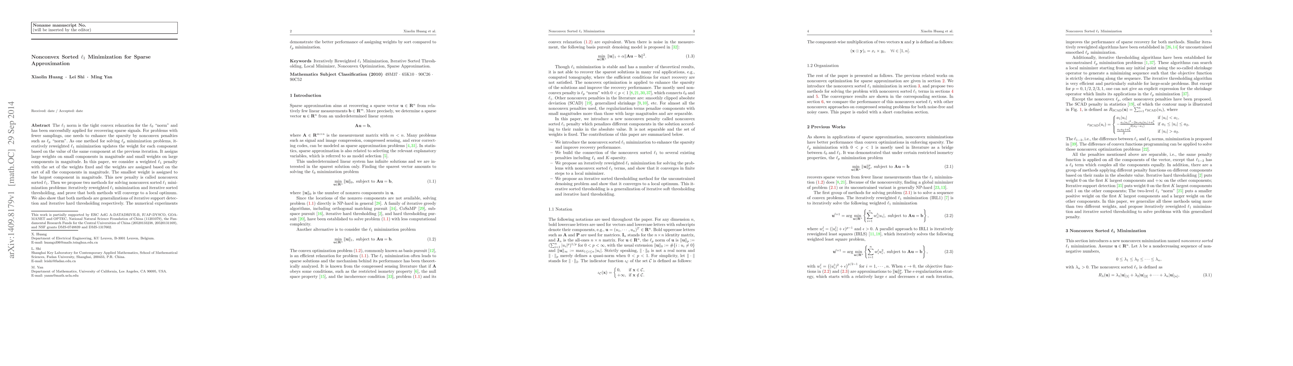 This paper introduces a nonconvex sorted $\ell_1$ minimization method to enhance sparsity in sparse signal recovery. It proposes two solution methods—iteratively reweighted $\ell_1$ minimization and iterative sorted thresholding—and proves their convergence to local optima, demonstrating superior performance over $\ell_p$ minimization in numerical experiments.