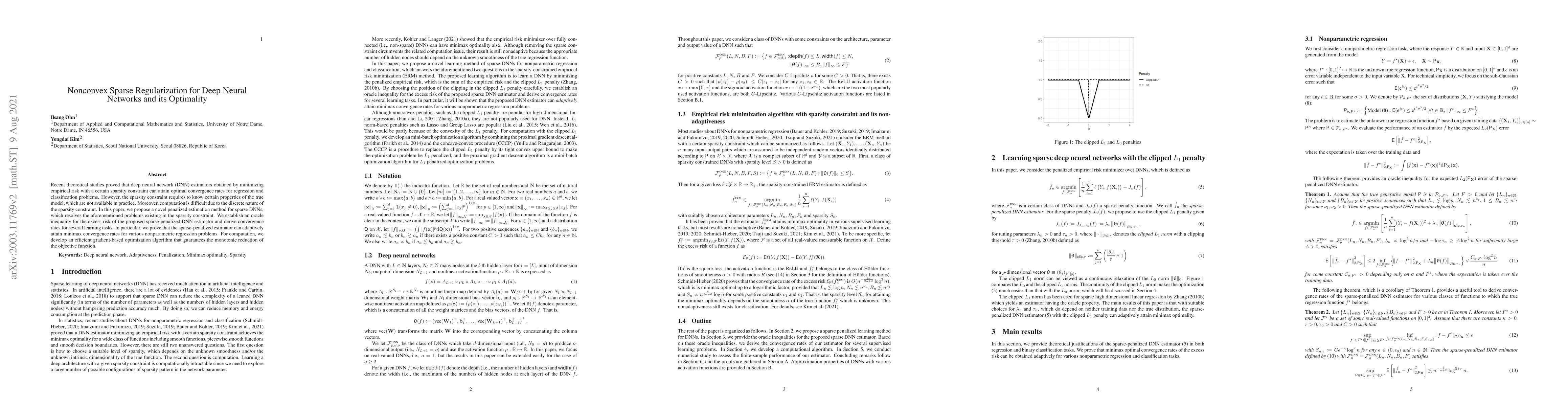 Researchers developed a new method to train deep neural networks with sparse constraints, overcoming issues of unknown model properties and computationally infeasible methods. Their approach achieves optimal convergence rates for various learning tasks, including adaptive minimax convergence.