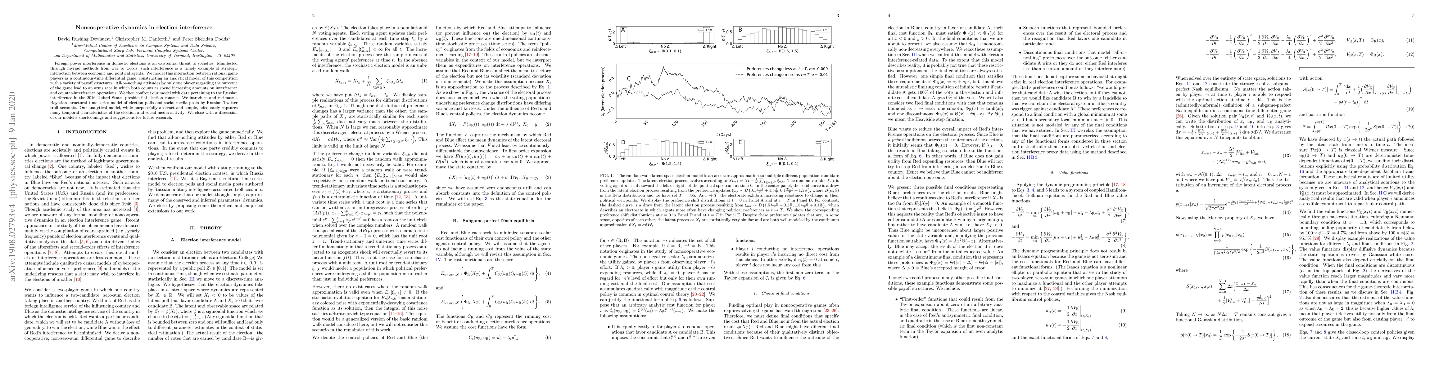Foreign power interference in domestic elections is an existential threat to societies. Manifested through myriad methods from war to words, such interference is a timely example of strategic interaction between economic and political agents. We model this interaction between rational game players as a continuous-time differential game, constructing an analytical model of this competition with a variety of payoff structures. All-or-nothing attitudes by only one player regarding the outcome of the game lead to an arms race in which both countries spend increasing amounts on interference and counter-interference operations. We then confront our model with data pertaining to the Russian interference in the 2016 United States presidential election contest. We introduce and estimate a Bayesian structural time series model of election polls and social media posts by Russian Twitter troll accounts. Our analytical model, while purposefully abstract and simple, adequately captures many temporal characteristics of the election and social media activity. We close with a discussion of our model's shortcomings and suggestions for future research.