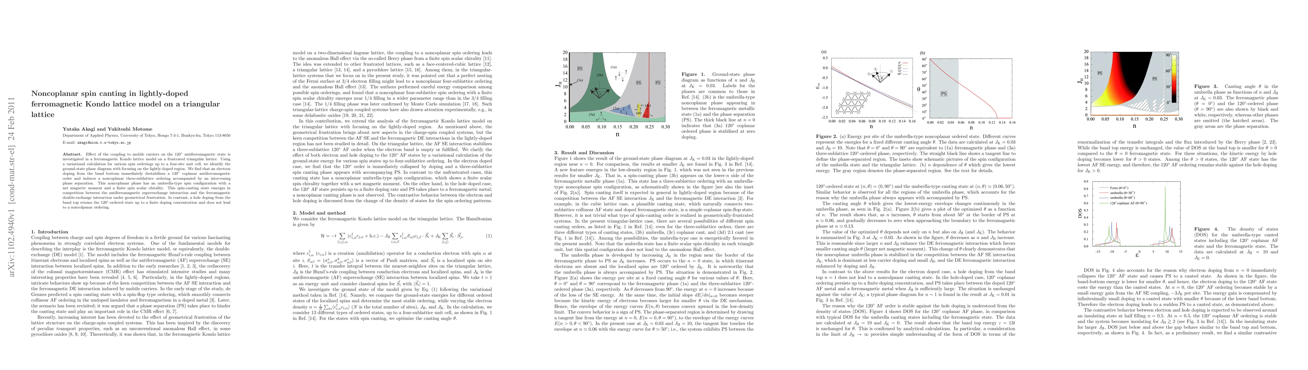 This study explores the impact of mobile carriers on a 120° antiferromagnetic state in a ferromagnetic Kondo lattice on a triangular lattice, revealing that electron doping induces a noncoplanar spin canting with a three-sublattice ordering, while hole doping maintains the original antiferromagnetic order.