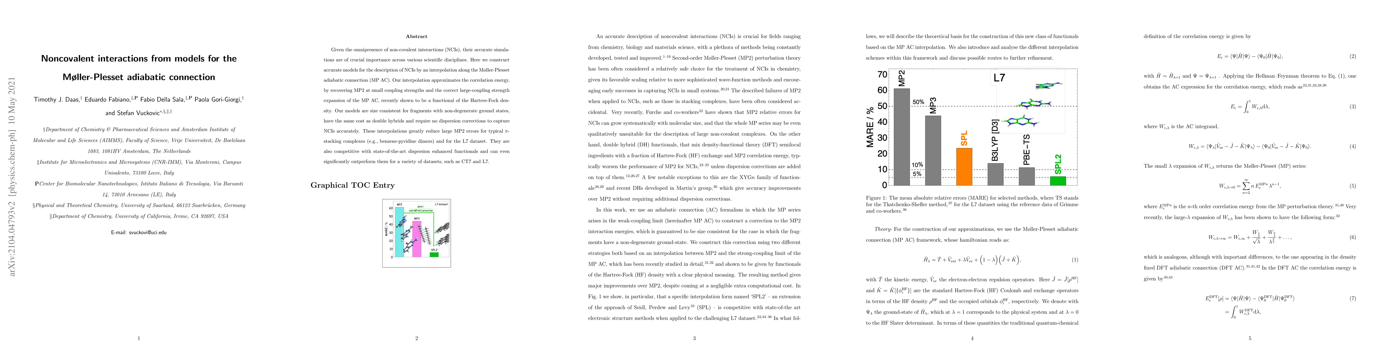 This paper develops accurate models for simulating noncovalent interactions (NCIs) using interpolation along the M{\o}ller-Plesset adiabatic connection (MP AC), which approximates correlation energy and reduces large MP2 errors for $\pi$-stacking complexes. The proposed models are cost-effective, size consistent, and competitive with dispersion-enhanced functionals.