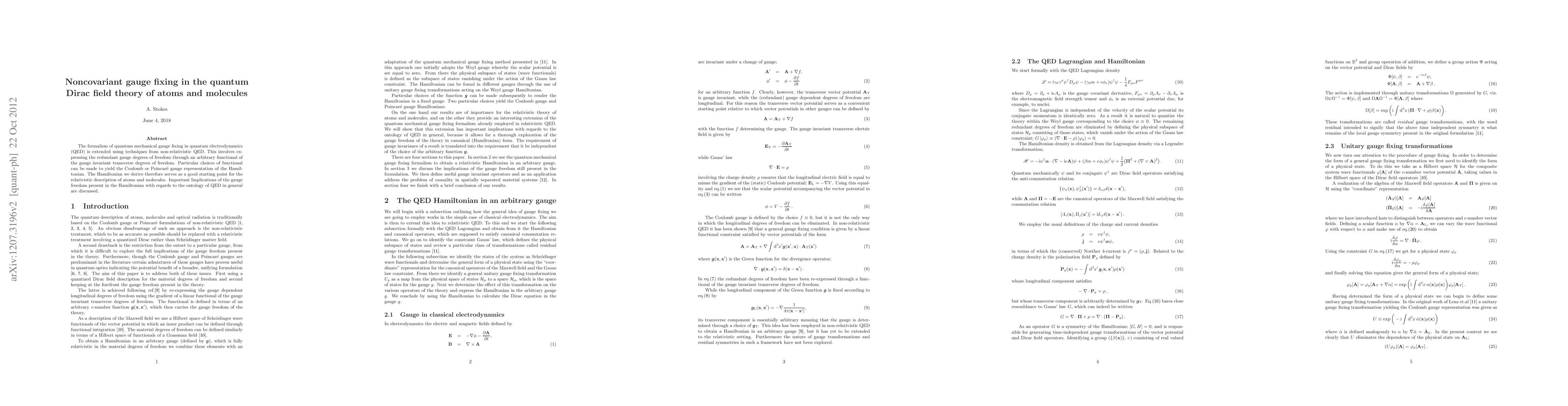 Researchers extended quantum electrodynamics to describe atoms and molecules using noncovariant gauge fixing, yielding a Hamiltonian that serves as a starting point for relativistic Dirac field theory.