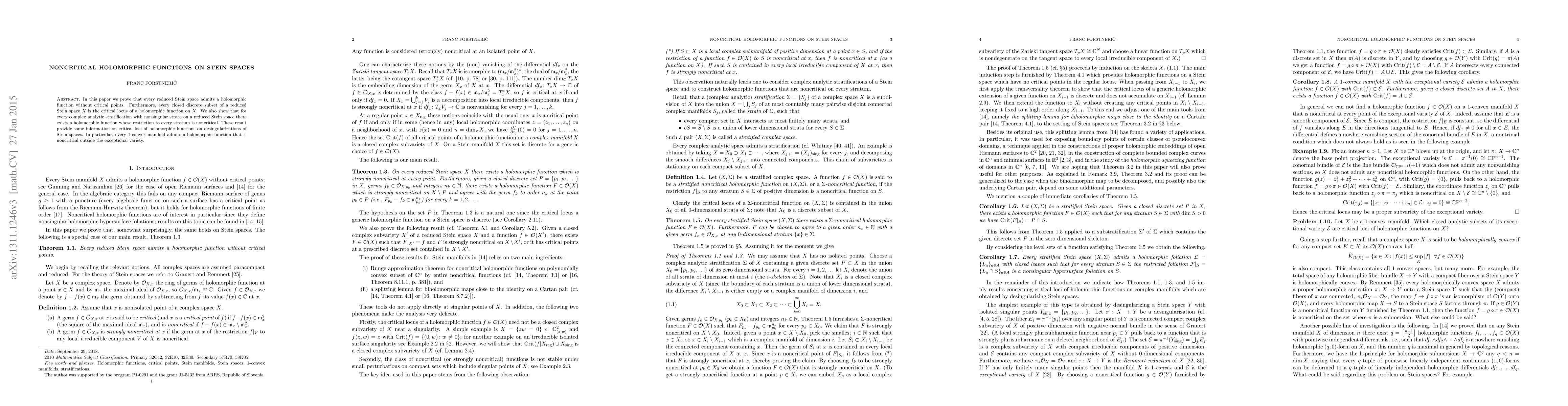 The paper establishes key results in the theory of holomorphic functions on Stein spaces, particularly proving the existence of noncritical holomorphic functions and their properties under stratification.