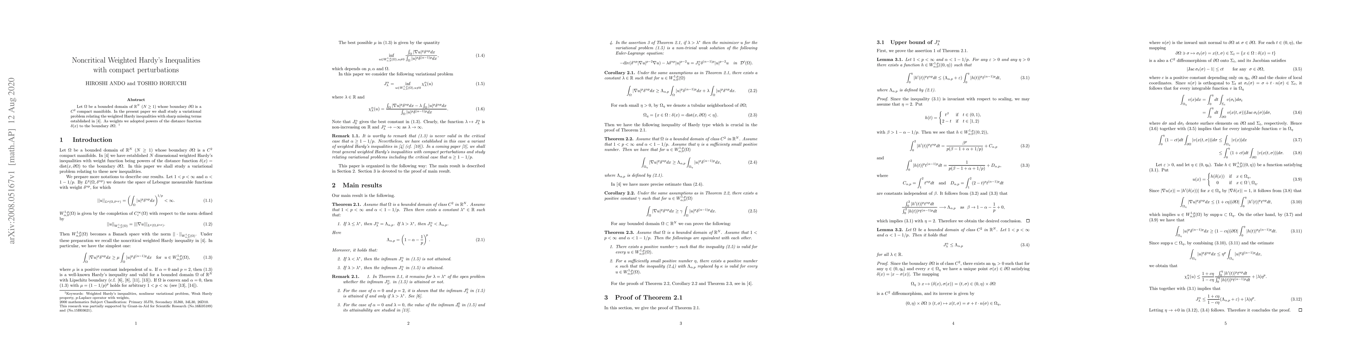 This paper investigates variational problems concerning weighted Hardy inequalities with missing terms, focusing on compact perturbations in a bounded $\mathbb{C}^2$ domain $\Omega$ in $\mathbb{R}^N$, where the weights are powers of the distance to the boundary.
