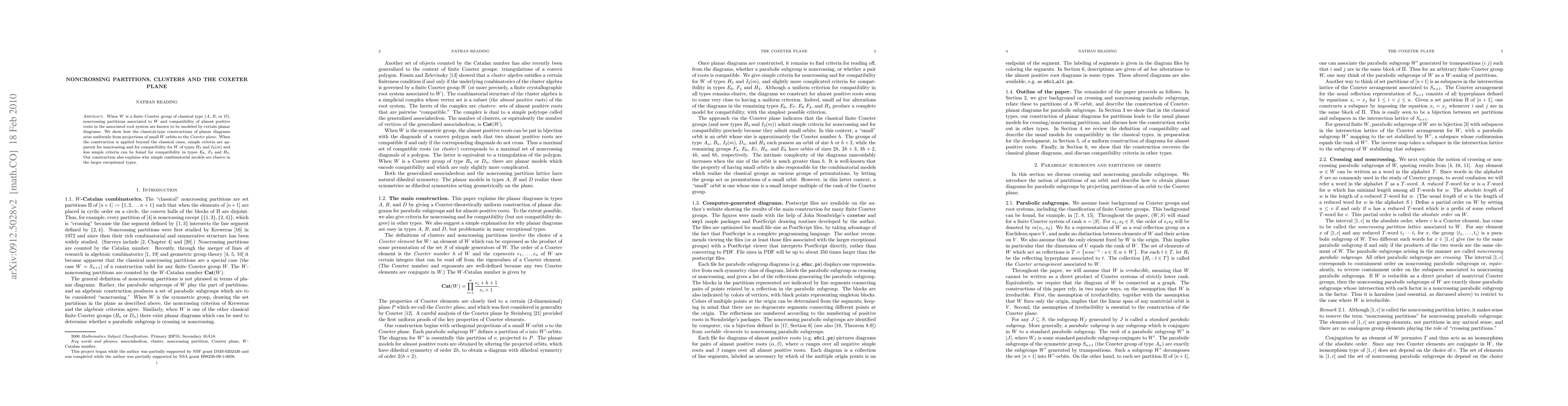 This paper explores the uniform emergence of noncrossing partitions and root system compatibility in finite Coxeter groups through projections onto the Coxeter plane, revealing simple criteria for classical types and more complex ones for exceptional types like E_6, F_4, and H_4, while explaining the difficulty of finding combinatorial models for the latter.