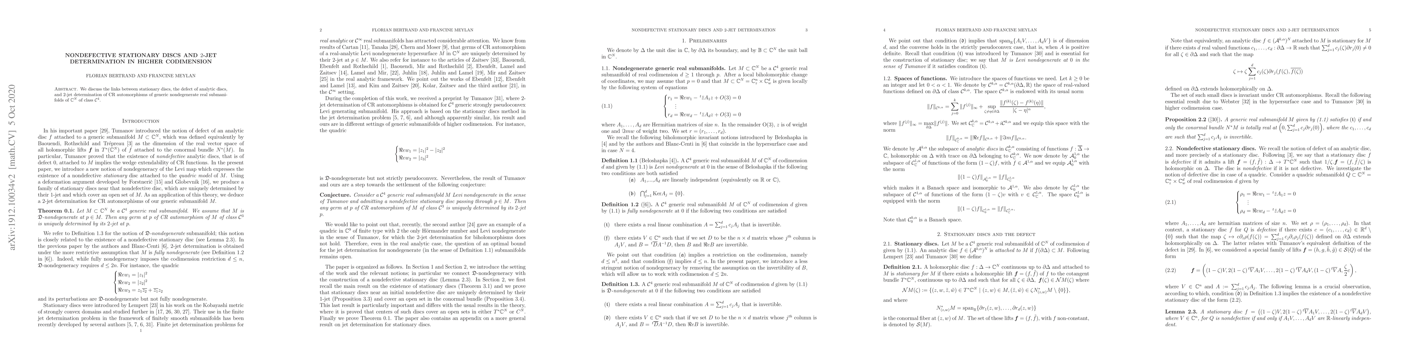 Summary: This paper explores the connections between stationary discs, analytic disc defects, and the 2-jet determination of CR automorphisms in higher codimension for generic nondegenerate real submanifolds of class C^4 in C^N. The study aims to understand the geometric properties and implications of these relationships.