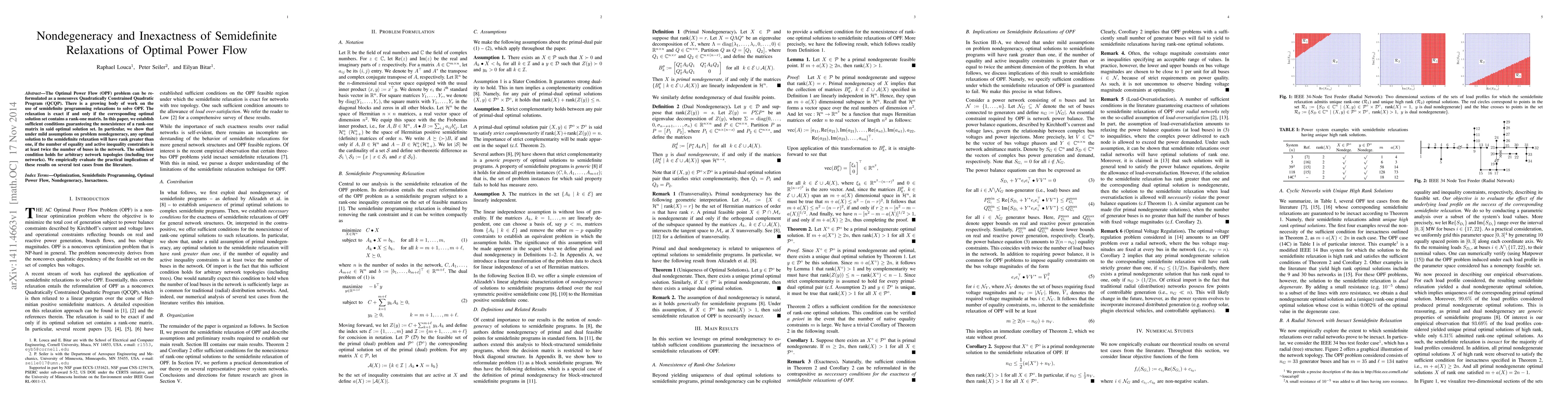 This paper establishes conditions for nondegeneracy and inexactness in semidefinite relaxations of the Optimal Power Flow problem. It shows that under mild assumptions, optimal solutions to the relaxation will have rank greater than one if the number of constraints is at least twice the number of buses, ensuring the relaxation is inexact.