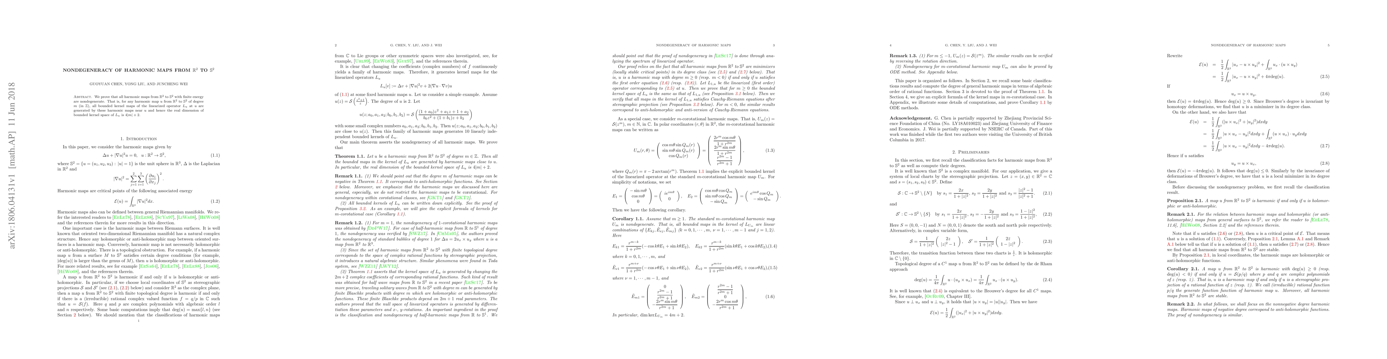 Summary: This paper proves that all harmonic maps from $\mathbb R^2$ to $\mathbb S^2$ with finite energy are nondegenerate, with the dimension of the bounded kernel space of the linearized operator at these maps being $4|m|+2$, where $m$ is the degree of the map.