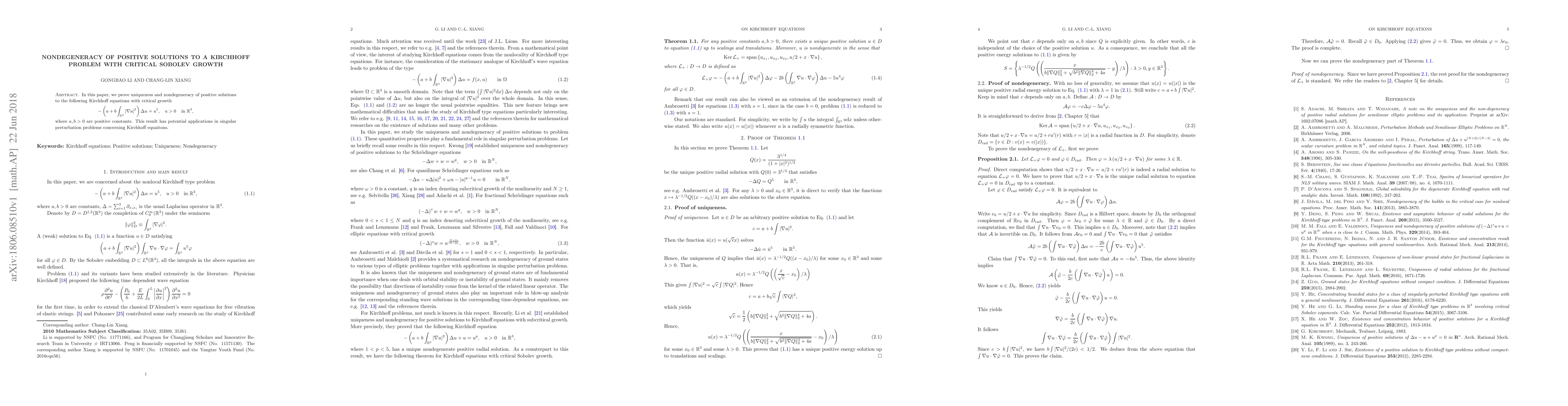 This paper proves uniqueness and nondegeneracy of positive solutions to a Kirchhoff equation with critical Sobolev growth, demonstrating significant implications for singular perturbation problems involving Kirchhoff equations.
